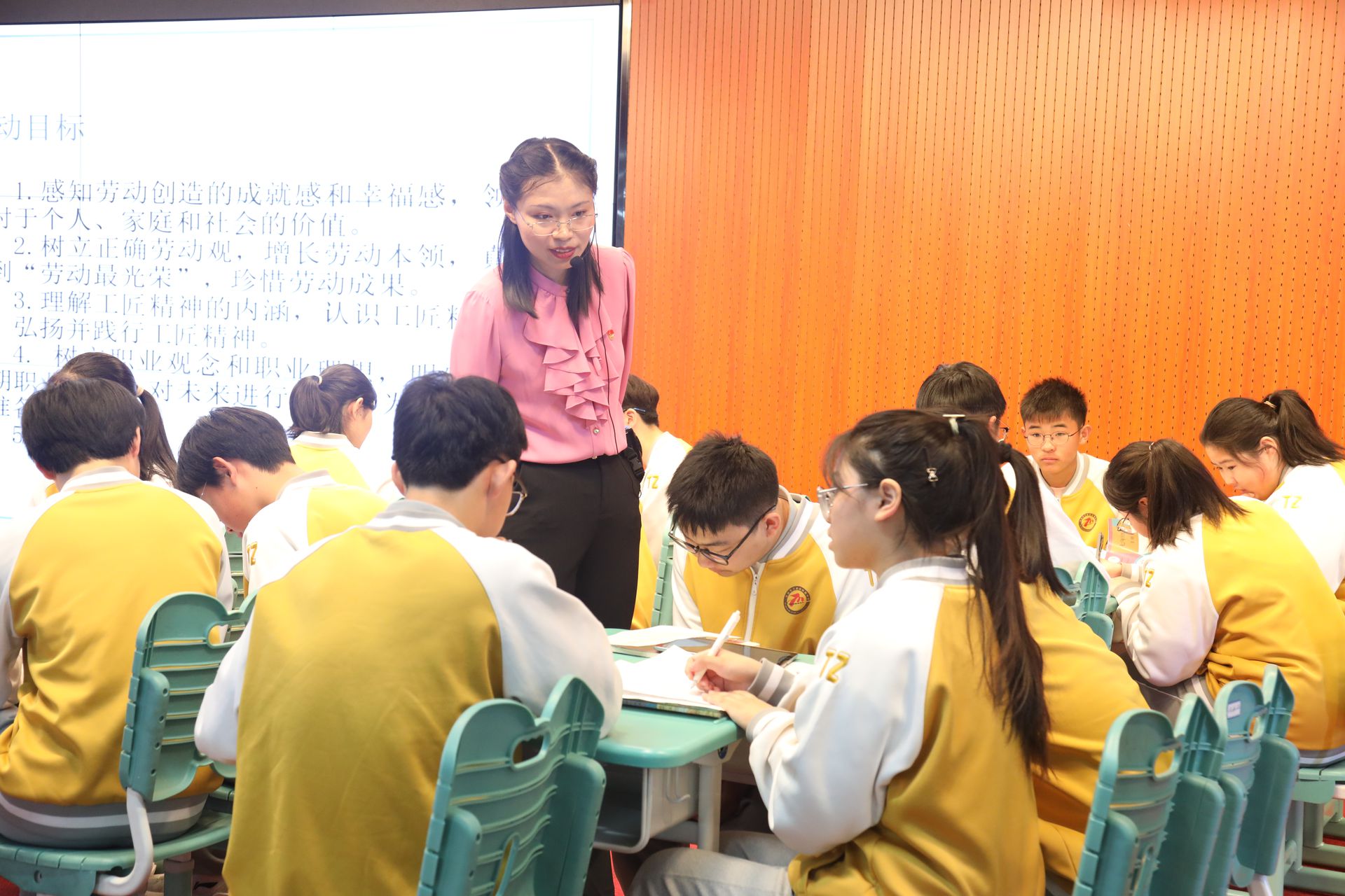 此次活动以一堂初三年级师生的试题讲评课开始。课堂上,三家店铁路中学教师闫建琴通过与学生一起回顾精彩的社会实践活动,将学生的成长“关键词”与课本知识进行了巧妙的关联:“我们到博物馆体验过非遗文化的魅力,在爱国主义教育基地感受过浓浓的家国情怀,在社会实践中体会过劳动的艰辛和帮助他人的快乐,这些都是能够和课本中的知识相关联的。”在老师的引导下,学生们深入理解实践活动和道德与法治课程知识之间的关系,并通过设计一场具有可行性和创新性的“劳动点亮人生”主题任务,开阔思路,实现思维的跃迁。