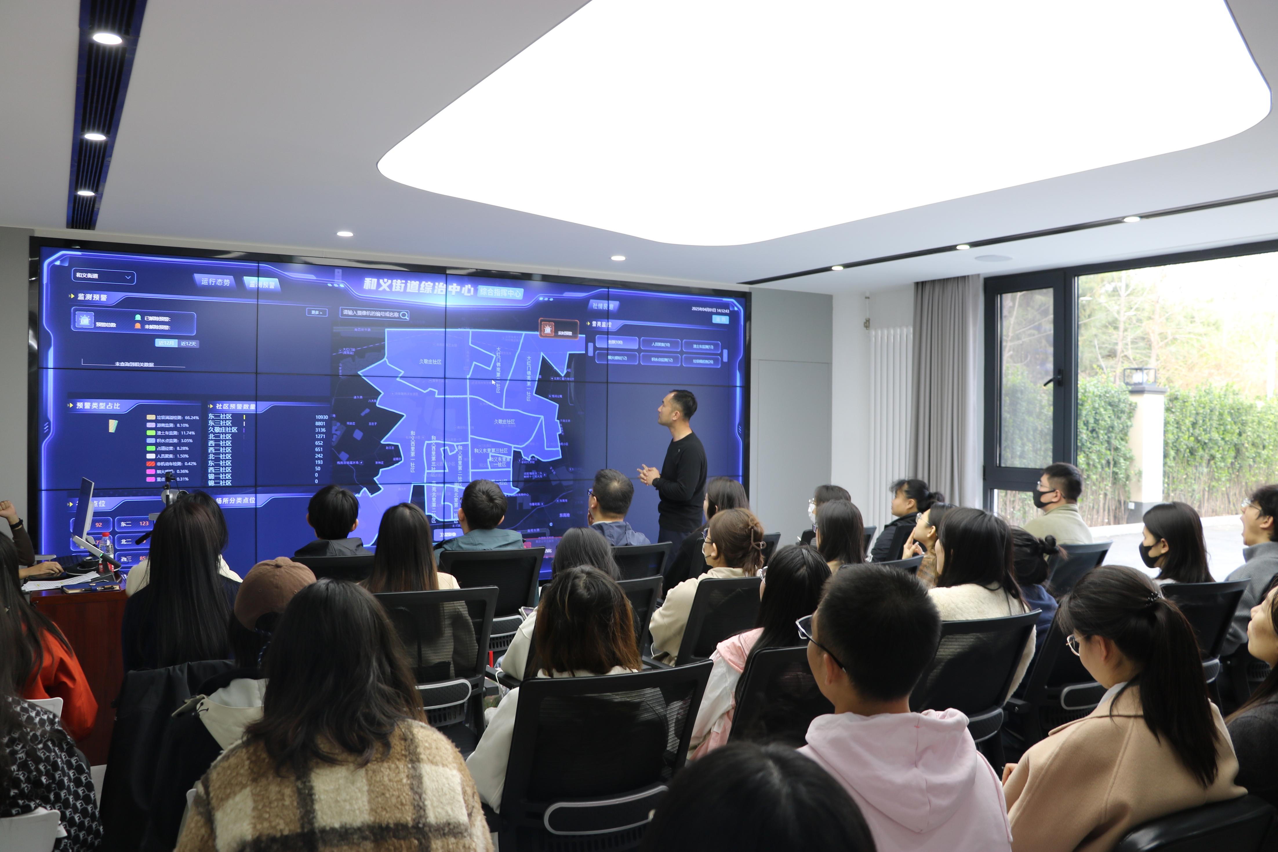 在综合指挥中心,通过系统展示“区—街—社”三级联动可视化指挥平台的运行机制,以具体实践案例和工作实效为切入点,深入解析街道“五位一体”治理平台依托科技赋能基层治理的实践路径,重点阐释其在应急响应、民生服务等领域中的应用价值。在综治中心苗智媗反诈工作室,学生们亲身体验AI换脸、变声等新型互联网诈骗手段,了解街道在打造群众身边的“多元宣防、全民反诈”工作格局方面的经验。