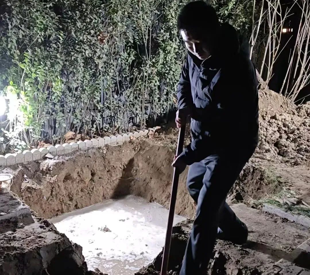晚上9点半,当多数居民已经休息,社区与物业的维修人员却开启了艰苦的停水抢修工作。水管破裂处在地下深埋,这无疑增加了抢修的难度。大家打着手电,一寸一寸地寻找出水点。每挖开一处,水就汹涌冒出,抽水车一刻不停地运转,全力抽排。工作人员们顾不上汗水湿透衣衫,一心只为尽快修复水管。
