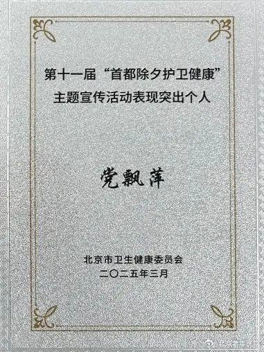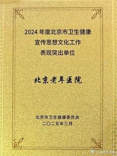3月28日,北京市卫生健康委员会召开 2025年全市卫生健康宣传思想文化工作会议。会上,对2024年度在卫生健康宣传思想文化工作中表现卓越的单位及个人予以表彰。北京老年医院荣获2024年度北京市卫生健康宣传思想文化工作表现突出单位称号;同时,宣传中心党飘萍荣获第十一届 “首都除夕护卫健康” 主题宣传活动表现突出个人殊荣。