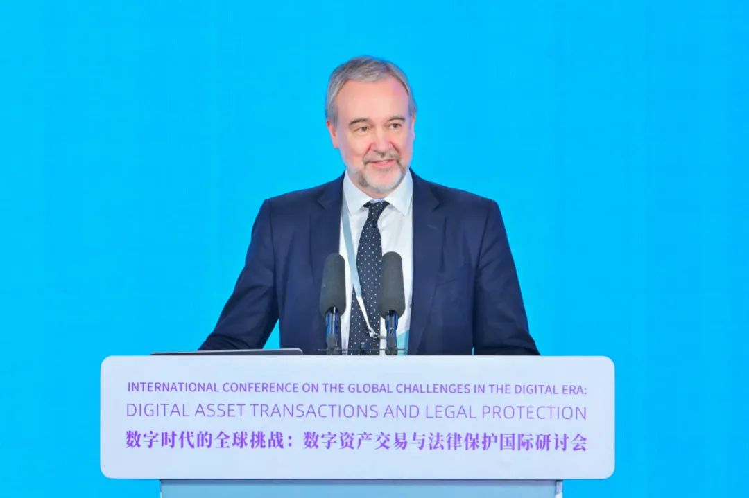 国际统一私法协会秘书长伊格纳西奥·蒂拉多介绍了《国际统一私法协会数字资产与私法原则》(以下简称《原则》)的发布背景与核心内容。在《原则》的制定过程中,国际统一私法协会广泛吸纳全球不同区域的见解,并充分参考行业内的最佳实践案例。他也欢迎大家积极参与到国际统一私法协会的各项工作中,助力数字资产交易在合法合规的轨道上稳健前行。