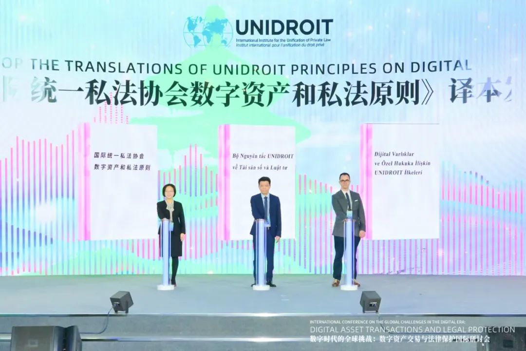国际统一私法协会高级法律官员威廉·布赖迪·沃森主持了《原则》中文、越南文、土耳其文三种语言译本的发布环节。《原则》是国际统一私法协会近年来基于数字经济发展实践、汇聚全球专家学者智慧的法律成果,三种语言译本的发布,有助于为数字资产的权属确认、交易规则和争议解决提供国际私法层面的指引,助力全球规则与各国实践的深度对话。