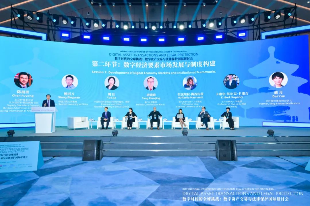 “数字经济要素市场发展与制度构建”由北仲副秘书长陈福勇主持,中国人民大学教授熊丙万,中国社会科学院法学研究所编审、教授姚佳,澳门大学教授唐晓晴,意大利罗马第一大学教授拉法埃拉·梅西内蒂,土耳其梅夫大学教授卡迪尔·贝尔克·卡潘吉,金杜律师事务所合伙人戴月围绕数字资产的界定、数据产权分配政策等要素市场的基础性问题、《原则》所涉及的数字资产转让与控制权等问题进行了交流。