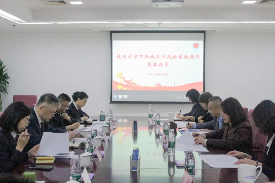 2025年4月8日下午,北京市西城区人民检察院党组书记、检察长张军一行五人前往北京市西城区司法局进行走访交流,并对西城区司法局反馈的意见建议进行现场回应。西城区司法局党组书记、副局长吕丹、局长毕菲及其他党组成员、相关业务部门负责人参与座谈交流。