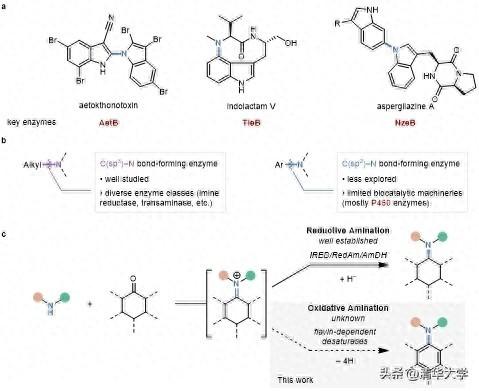 基于黄素依赖酶的独特脱氢催化机制,研究人员开发了非天然的苯胺合成酶系统,可以有效地制备二级与三级苯胺衍生物。这种酶催化系统可以通过后续的进化进一步提高催化效率,并通过计算与实验结合的方式完善机制研究。总体而言,这项工作为苯胺化合物的合成提供了高效、环境友好的生物合成策略,在生物催化和药物开发等领域具有重要的应用前景。
