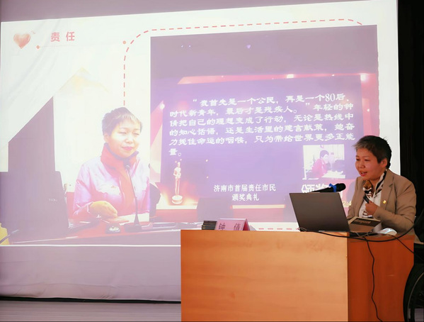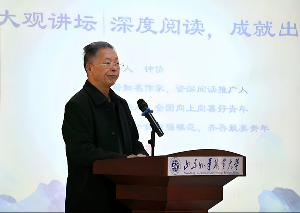 钟倩满怀深情地祝福山东外事职业大学“阅”来“悦”好,愿这所充满活力与希望的学府,在阅读的滋养下,绽放出更加绚烂的光彩,培养出更多有思想、有文化、有担当的新时代青年。