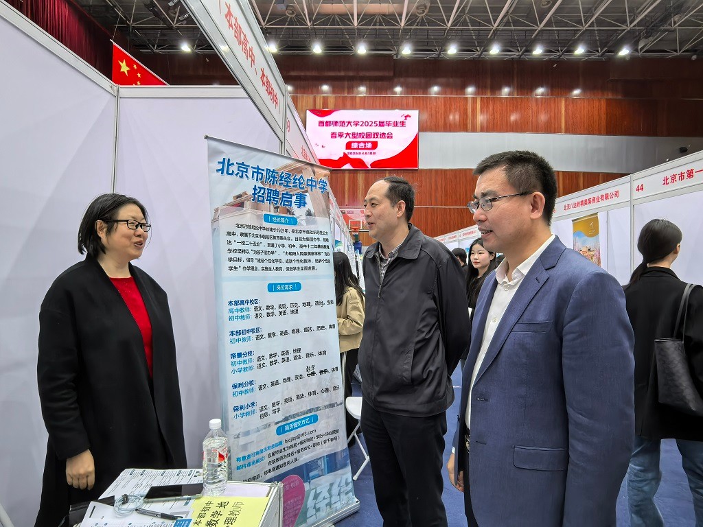 首都师范大学党委常委、副校长王洛忠,招生就业处处长臧强,美术学院党委书记刘锐,以及相关人员在现场开展用人单位走访调研。王洛忠在调研中对双选会整体组织工作和多单位协同办会的创新形式表示肯定。他要求进一步加强就业市场建设,拓宽就业渠道,挖掘更多就业岗位;加强与用人单位联系,创新服务方式,为毕业生高质量充分就业搭建平台。王洛忠还与用人单位、求职毕业生进行了深入交流。