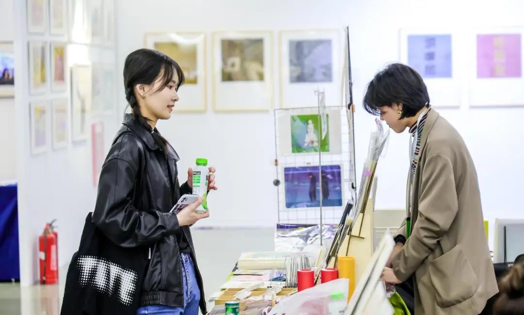 在嘉德艺术中心二层展厅特别设立的“艺术市集”,与一层的画廊展区实现了有机联动,构建出兼具学术性与趣味性的展览场景。来自中外的青年艺术家们展示了他们在木刻、铜版、丝网等多种媒介上的实验性探索与个性表达,为本届大会注入了蓬勃的青春气息。其中,中央美院版画系的青年学生在市集展区展出了他们的“Z世代”作品,彰显出新生代艺术家们的多元视野与无穷创作潜力。