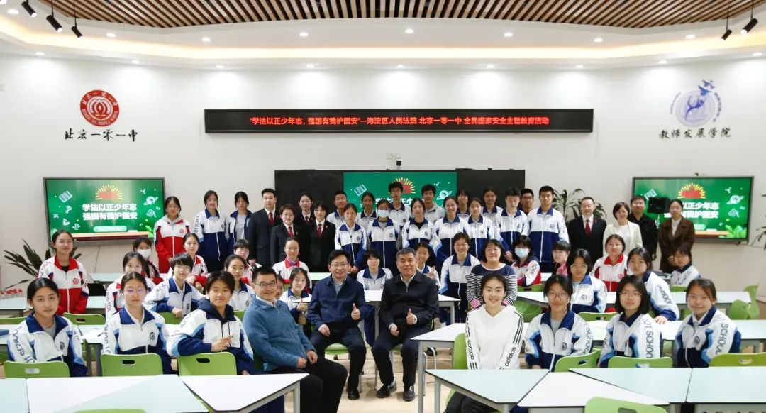 在第十个全民国家安全教育日来临之际,北京市海淀区人民法院的“普法小分队”又来到了北京一零一中校园。伴随着春日暖阳,一场名为“学法以正少年志 强国有我护国安”的法治教育活动在报告厅火热上演。海淀法院党组书记、院长亓纪作为该校法治副校长,与北京一零一中党委书记、校长熊永昌共同见证40余名高中生化身“国家安全小卫士”的成长时刻。