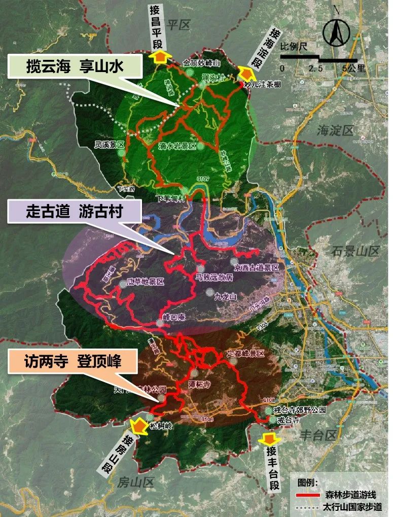 随着《北京市绿道系统专项规划(2023年—2035年)》的推进,门头沟区以总长度136公里的西山登峰揽胜森林步道(门头沟段)为轴线,正在编织一幅人与自然共生的立体画卷。这条横贯王平、妙峰山、龙泉、永定、潭柘寺五镇的绿色动脉,串联起28个村庄的古韵乡愁,将散落的山野秘境重新编织成“有故事可听、有风景可赏、有体验可玩”的徒步长廊。