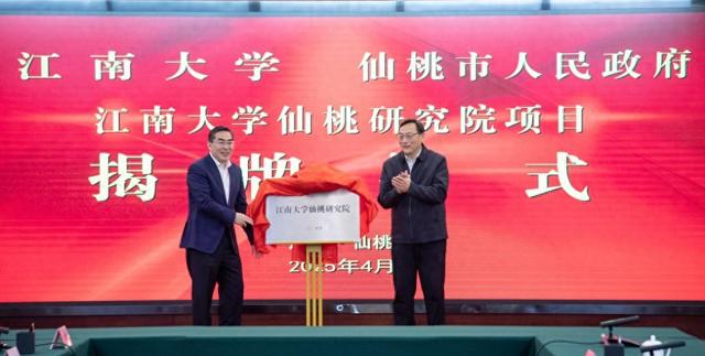 4月,江南大学仙桃研究院项目签约揭牌仪式在仙桃举行。江南大学党委书记吴正国,中国工程院院士、校长陈卫,校党委常委、副校长马鑫,仙桃市委书记孙道军,市委副书记、市长熊享涛,市委常委、秘书长朱慧玲,市委常委、统战部部长、副市长唐江平,副市长高佳出席仪式。活动由熊享涛主持。