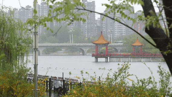 城市在春雨的浸润下