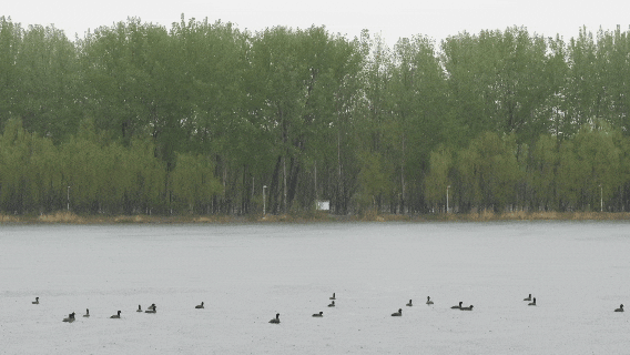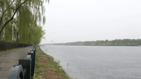 潮白河笼罩在烟雨中
