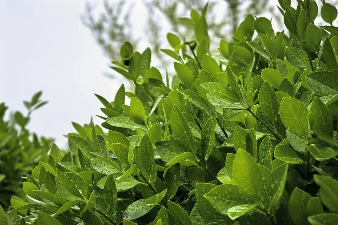 雨水洒在树叶间