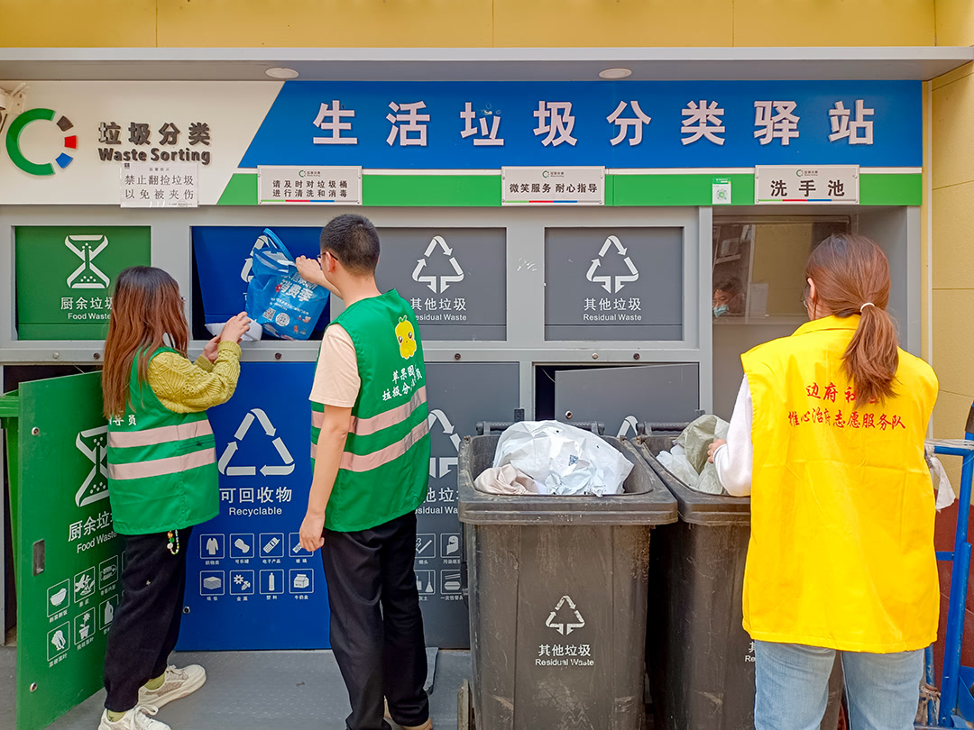 边府社区联合辖区共建单位开展了桶站值守及垃圾分类宣传活动。活动中,志愿者来到社区生活垃圾分类投放点进行桶前值守,向居民宣传垃圾分类知识,引导居民规范分类、正确投放,同时认真维护桶站周边环境。除此之外,志愿者还向居民发放垃圾分类宣传资料,听取居民群众对垃圾分类工作的意见和建议,凝聚更多力量推动垃圾分类成为新风尚。