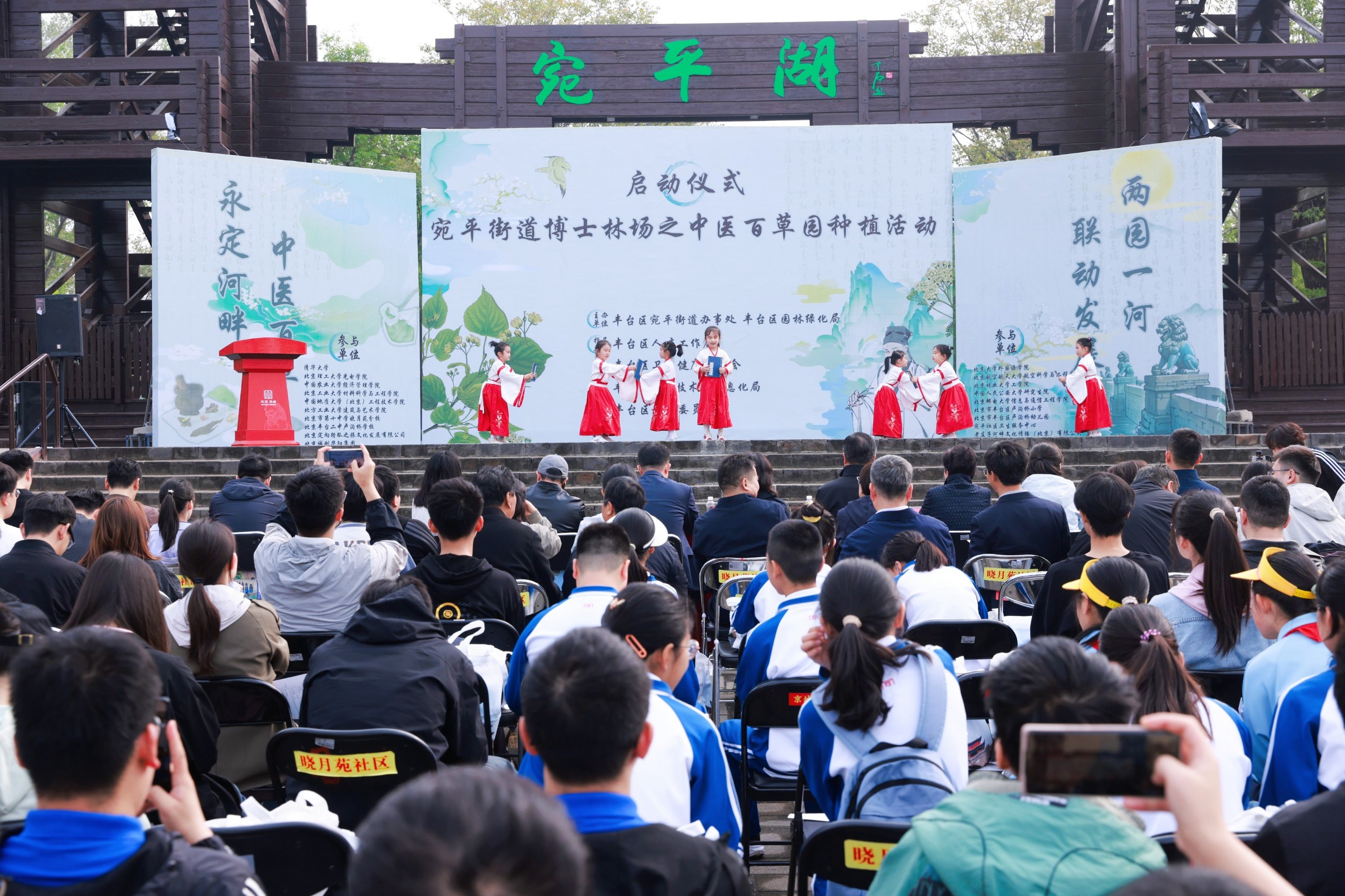 主会场由卢沟桥幼儿园的孩子们带来的舞台剧《永定河中医百草园·小药童奇遇记》以生动形式演绎中医药文化传承,赢得阵阵掌声。作为丰台区首批精品“乐学公园”之一,绿堤公园与卢沟桥小学、丰台二中卢沟桥学校签订研学协议,并获授“丰台观鸟点”称号。未来,绿堤公园将以“教育赋能生态,公园反哺教育”为宗旨,通过场地资源共享、课程联合开发、管理协同共治,为学生打造“自然教育共同体”,实现五育融合的素质教育创新实践。