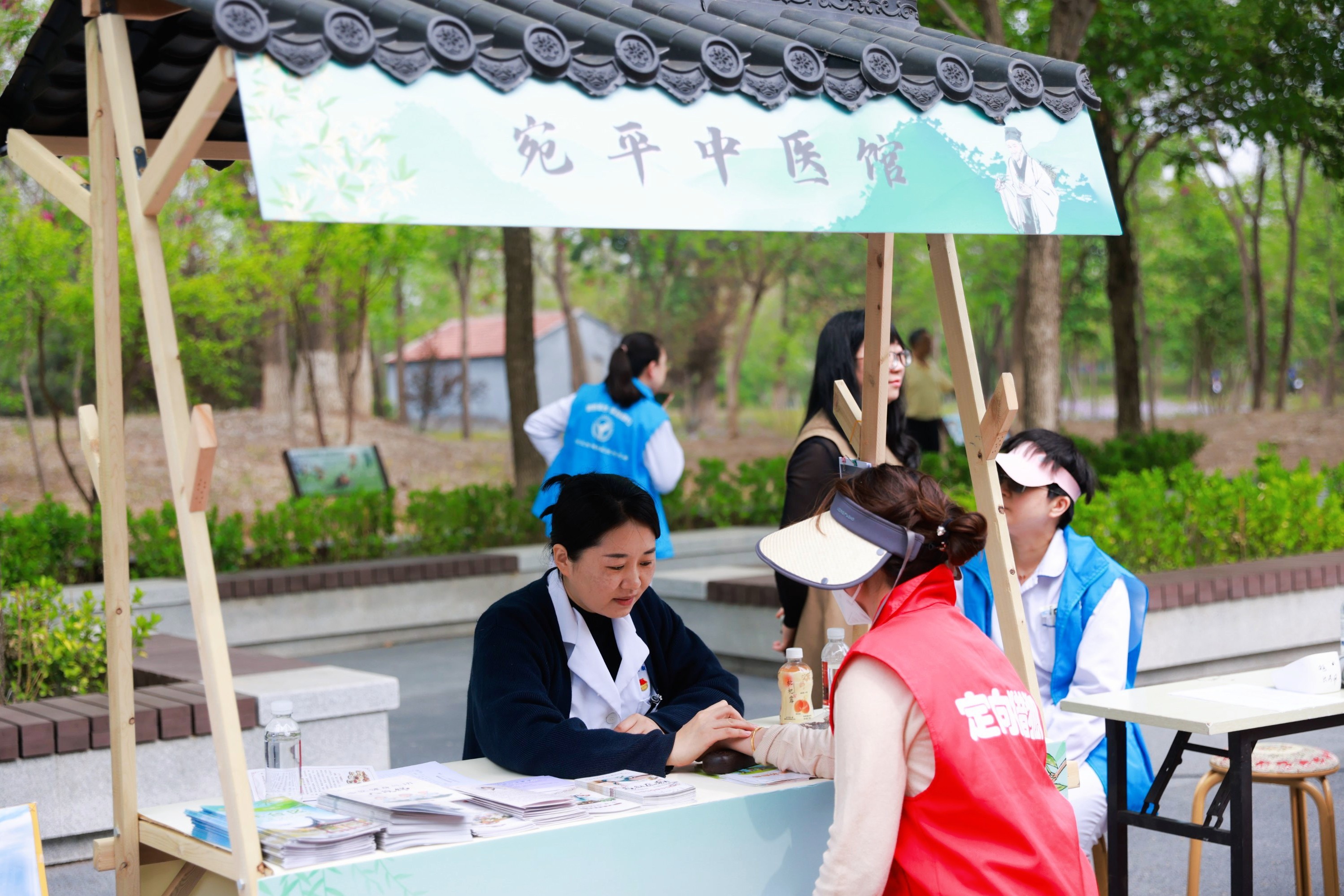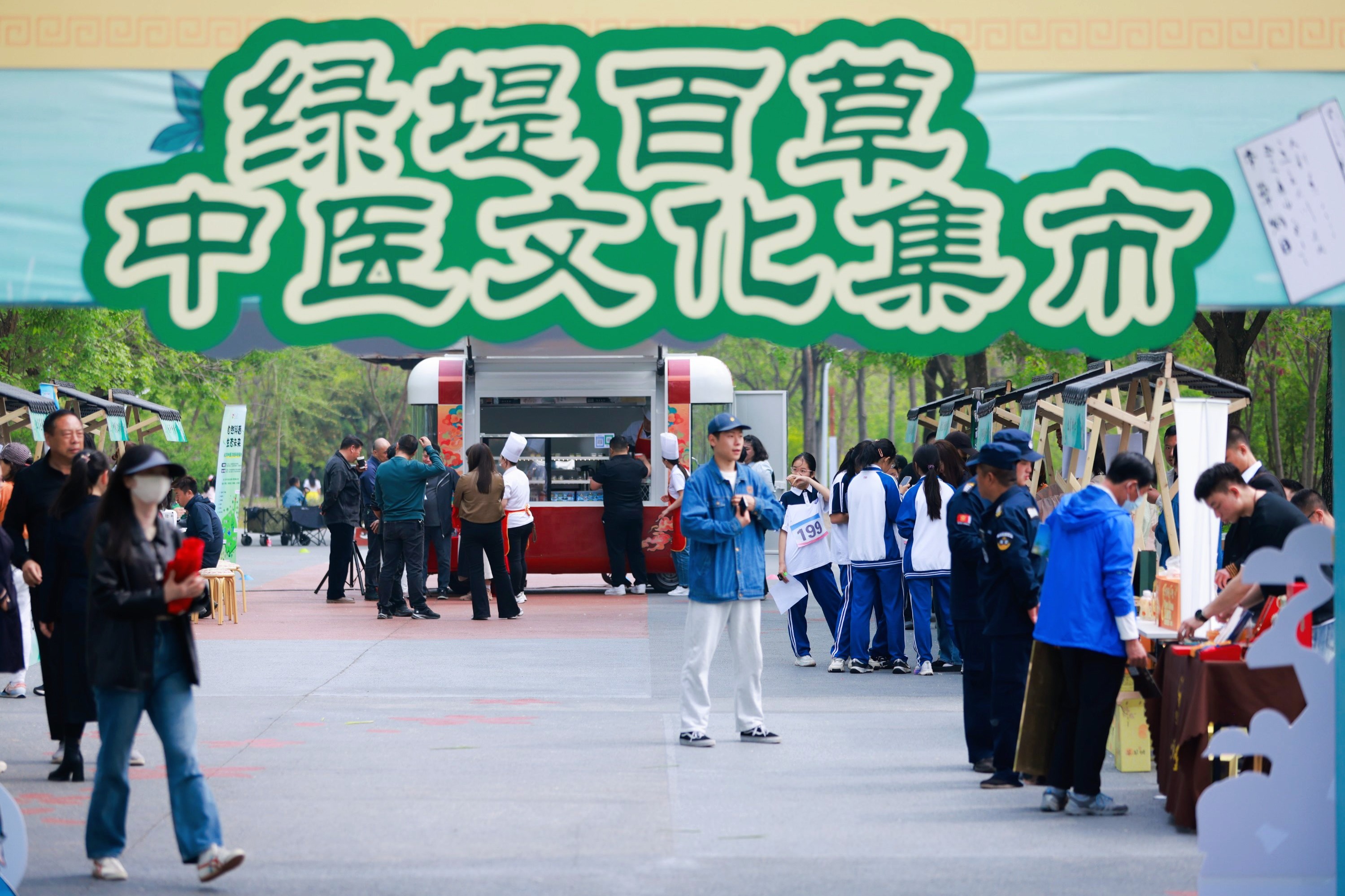 随着种植活动启动,高校、中小学师生与社会各界代表共同挥锹培土,栽种薄荷、金银花等中草药,为绿堤公园增添兼具文化底蕴与生态价值的“百草园”。融合中医药文化的“百草寻踪”定向越野赛在园区同步举行,参与者沿着绿堤公园特色路线,打卡沿线中医药主题点位,在“李时珍”“孙思邈”等NPC设置的“药材寻踪”“古方解密”等打卡答题中学习中医药知识,通过趣味互动集齐“本草通关香囊”,在奔跑中践行生态保护理念。在百草中医文化集市展示区,则通过香囊制作、健康咨询等互动体验,让市民近距离感受传统医学魅力。