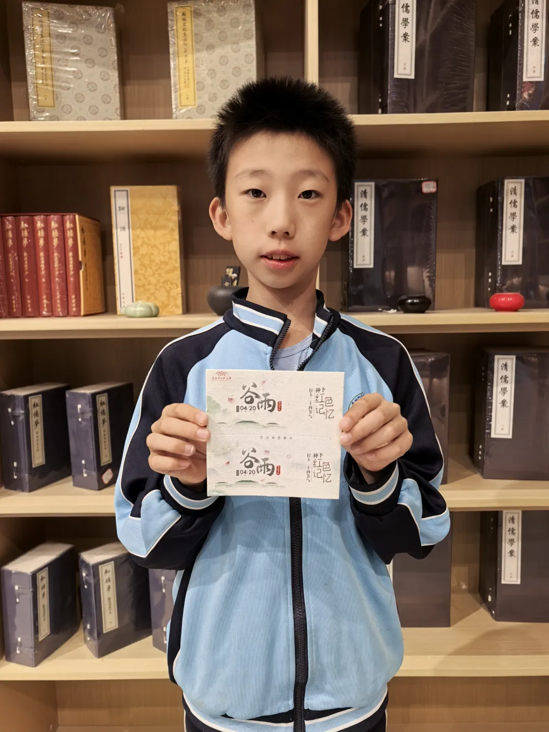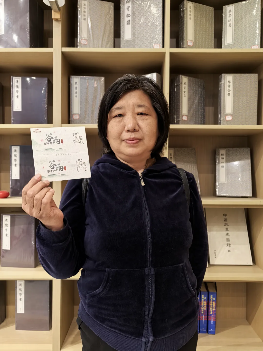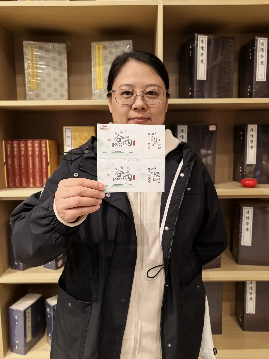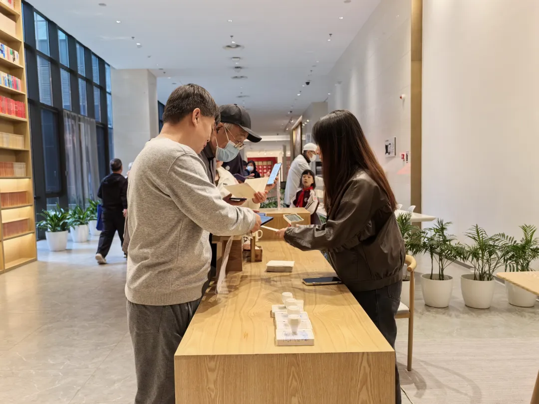 4月20日上午,香山馆在一层“赶考书吧”处精心布置“节气卡”领取与盖章区,工作人员热情地向观众递上“谷雨”主题节气卡片,在观众携带的集章册、笔记本上加盖春季专属印章。这一刻,观众一同将谷雨时节的美好瞬间完美定格,共同留存这份独属于传统节气给予的温暖记忆与时光意义。