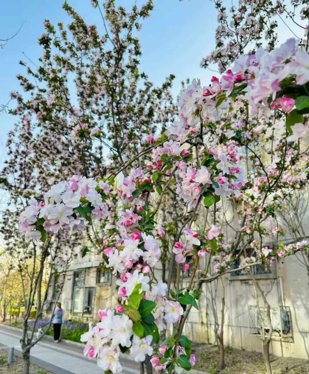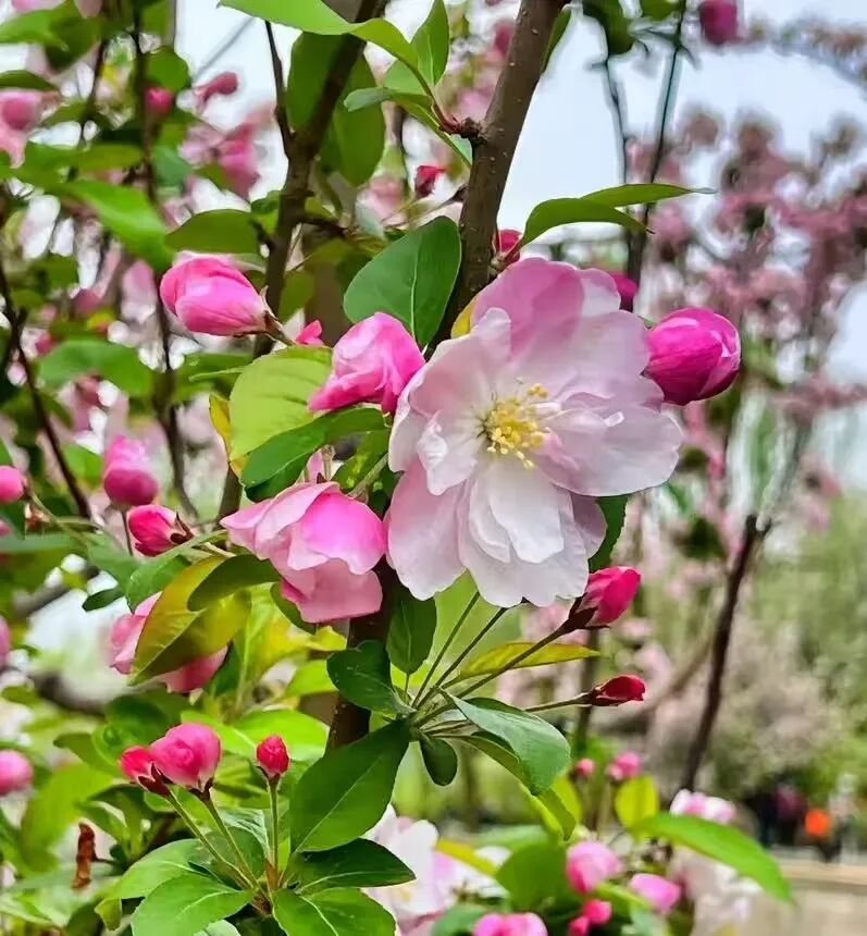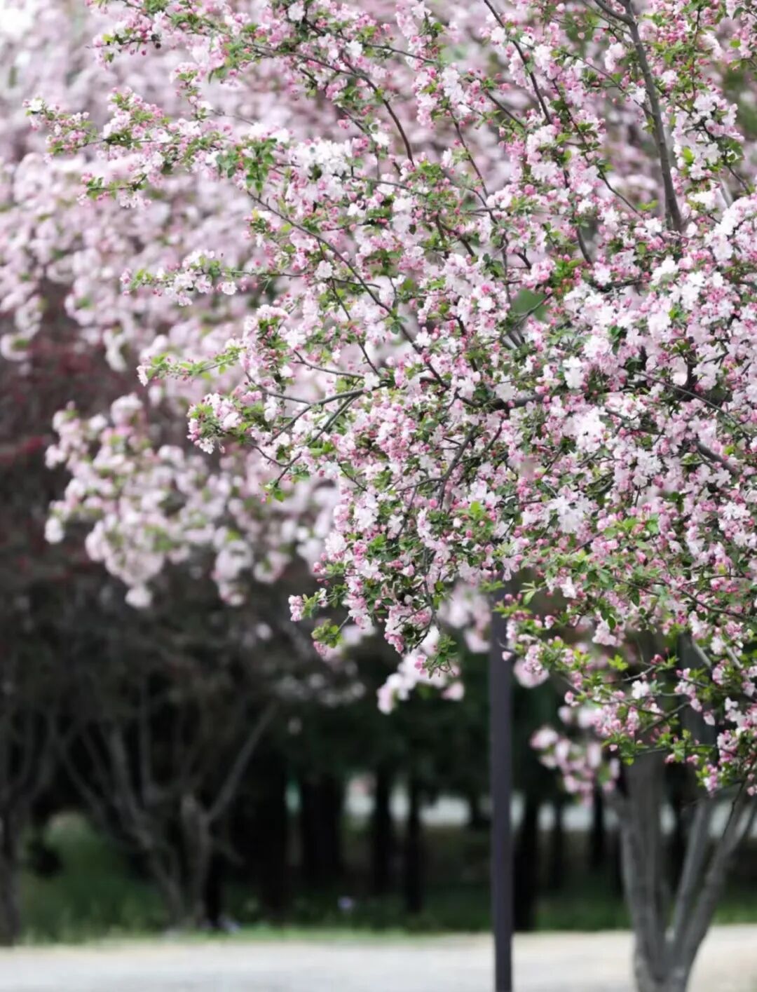 街道两旁,海棠如霞