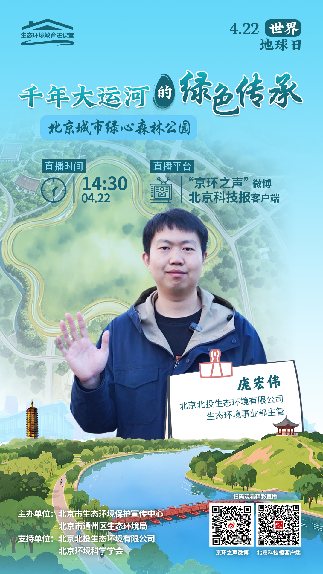 4月22日世界地球日当天,让我们一起跟随庞宏伟博士的脚步,打卡北京城市绿心森林公园,共同领略这个生态公园的独特魅力、聆听千年大运河的绿色传承故事吧!