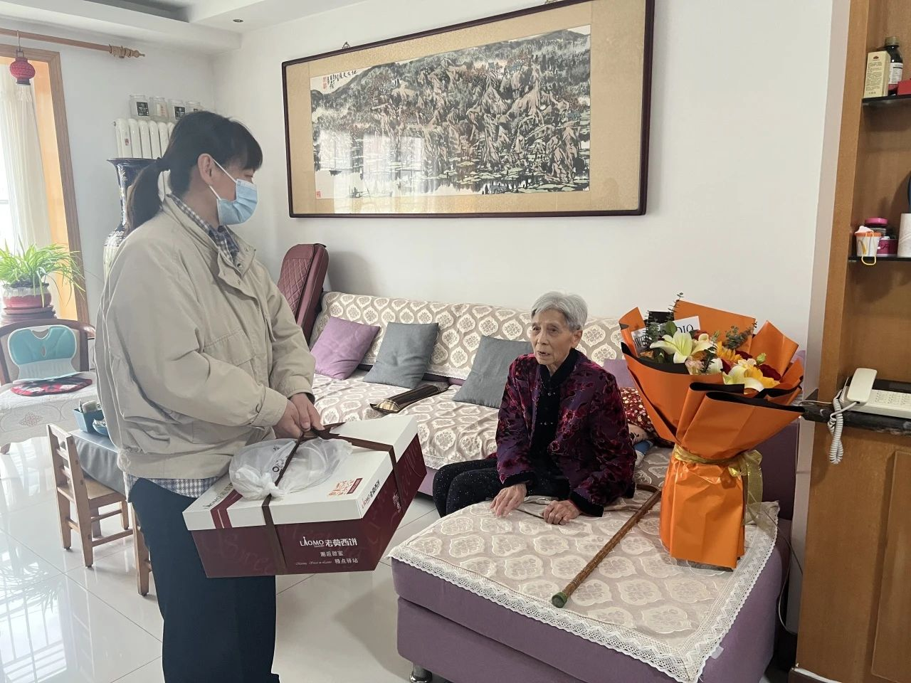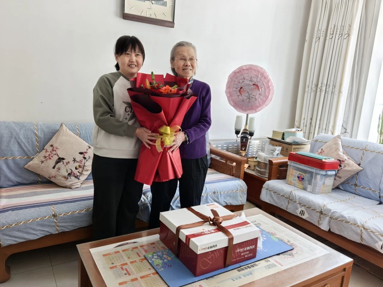 兴丰街道推出的“七送”服务中,“高龄老人生日送祝福”是一项重要内容。每逢辖区85岁以上老人生日,社区都会精心准备生日蛋糕和鲜花送上祝福。工作人员不仅带着满满的诚意登门祝贺,还会细心询问老人的身体状况,详细了解他们的日常饮食起居,并贴心叮嘱老人注意保暖、科学饮食。这项暖心举措让老人们真切感受到社区大家庭的温暖,充分展现了街道对高龄老人群体的关爱与尊重。