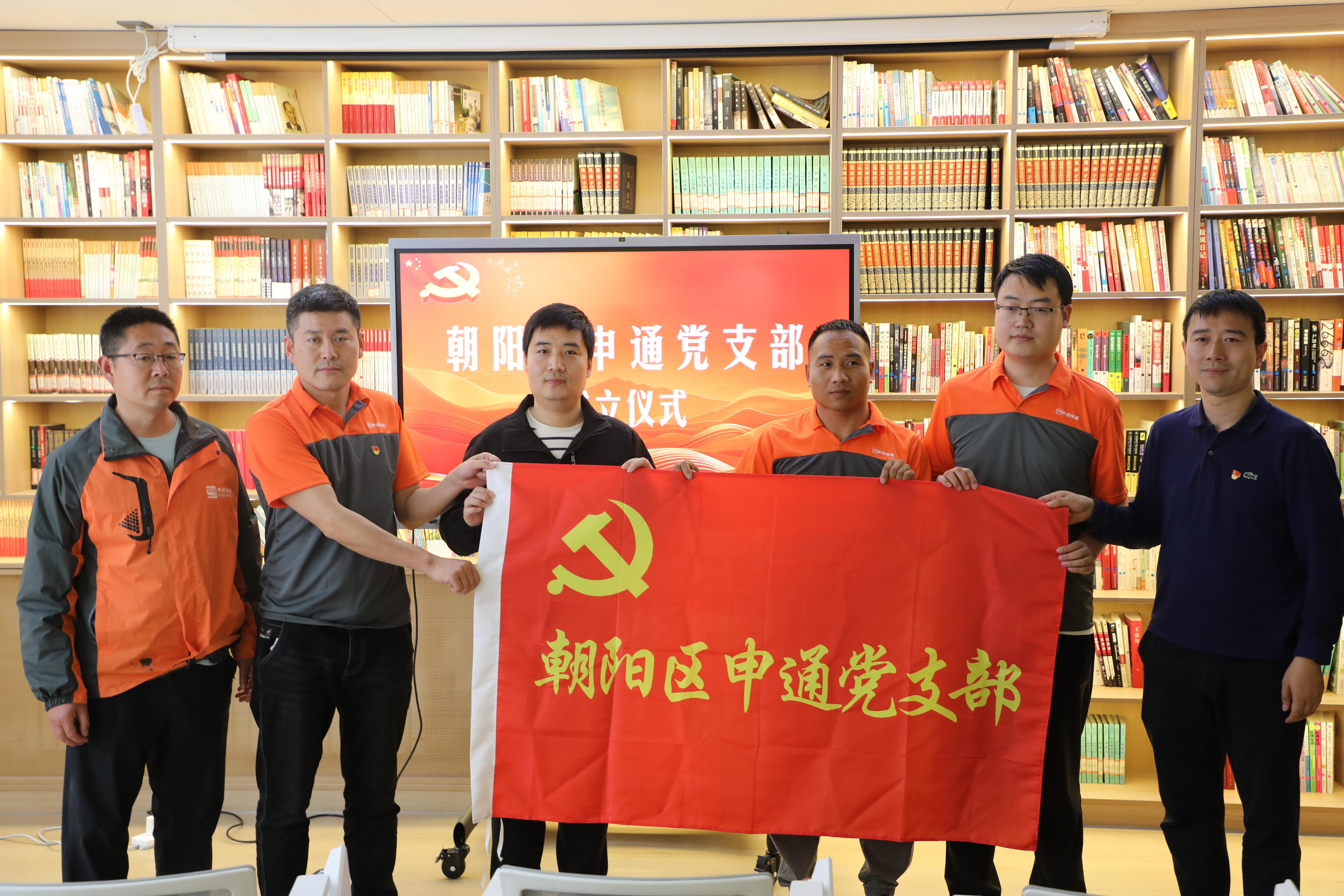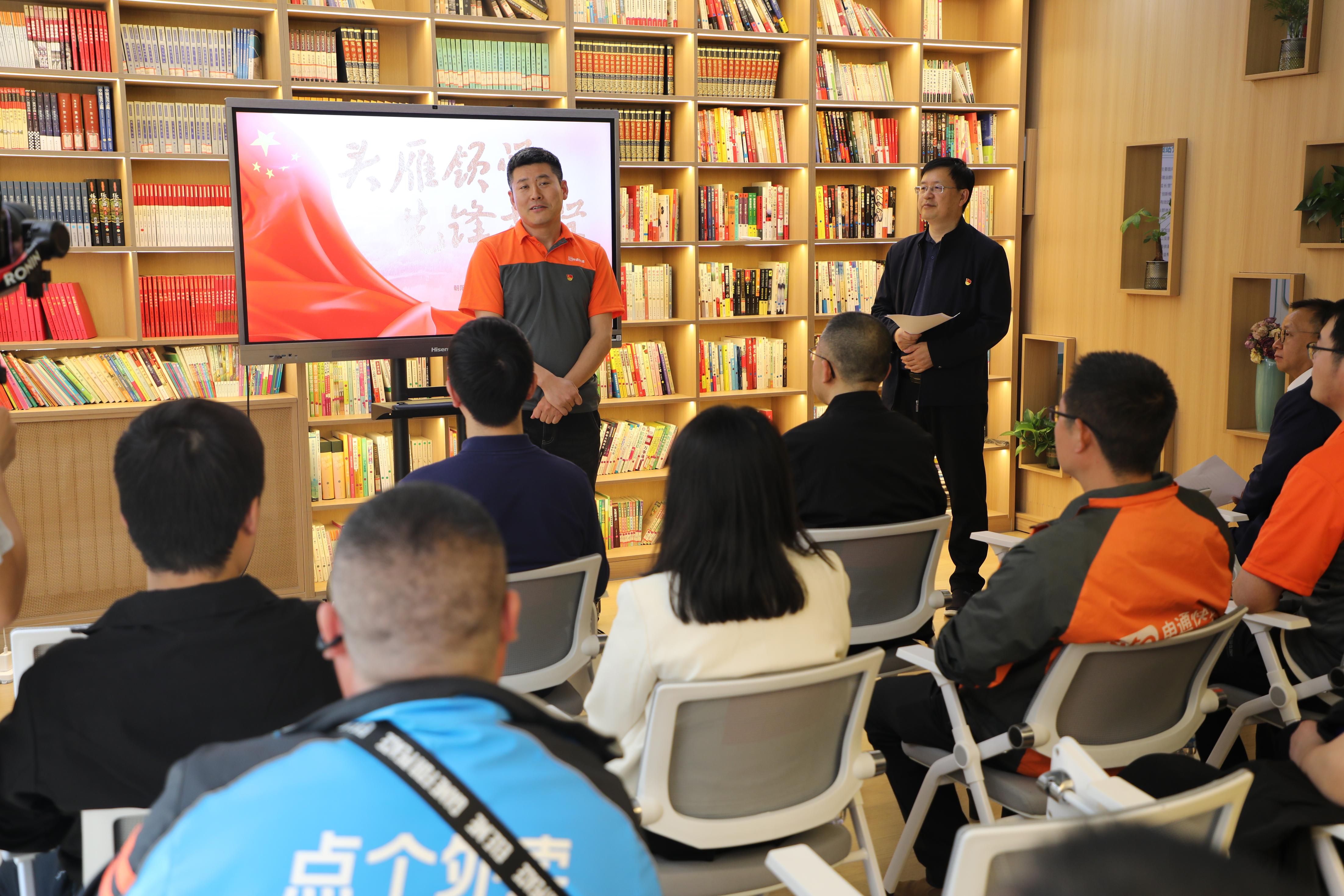 随后,朝阳区申通党支部成立仪式正式启动。在庄严的氛围中,街道工作人员宣读了党支部成立批复,陈涛向党支部授旗,象征着党组织在新业态领域的扎根与引领。