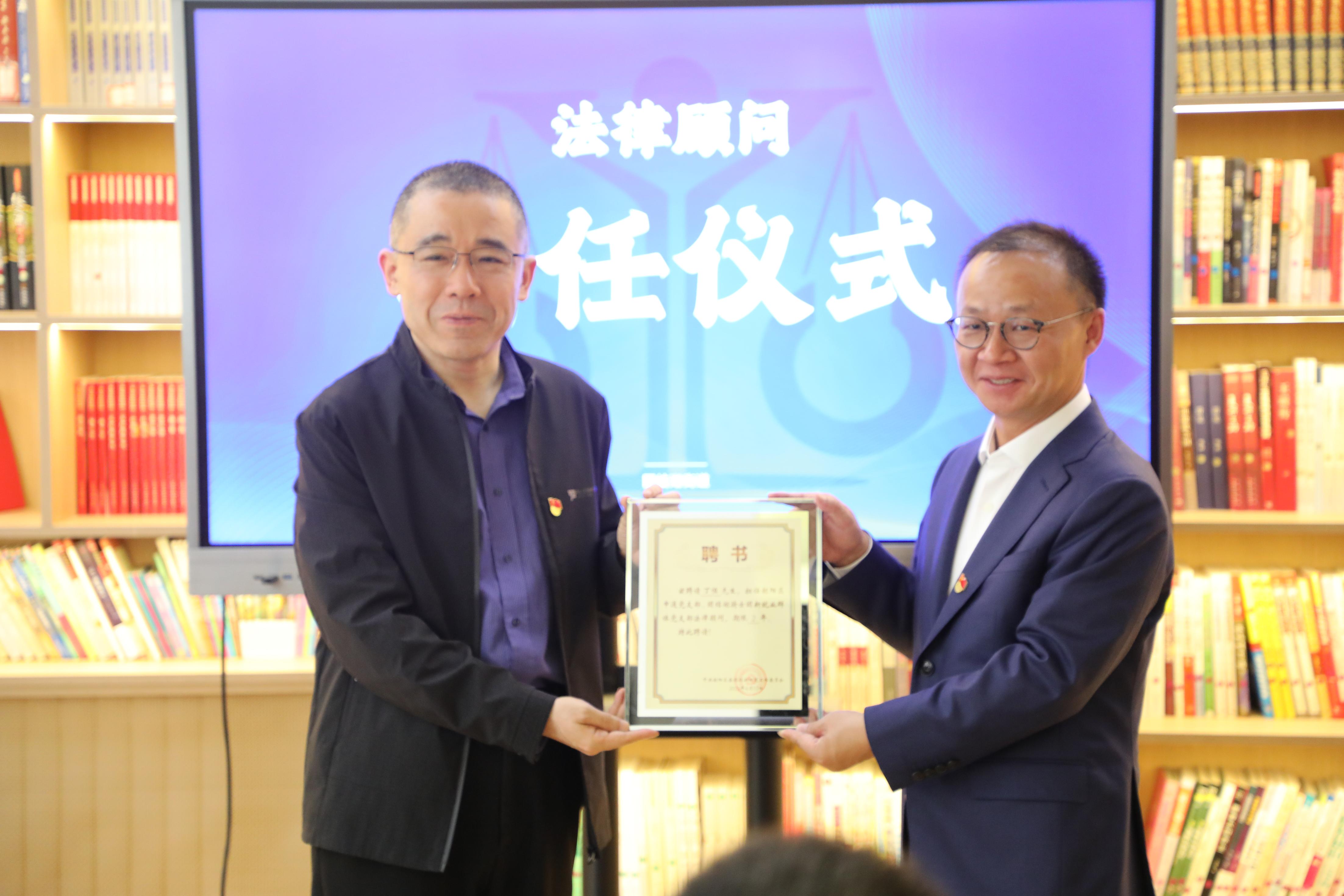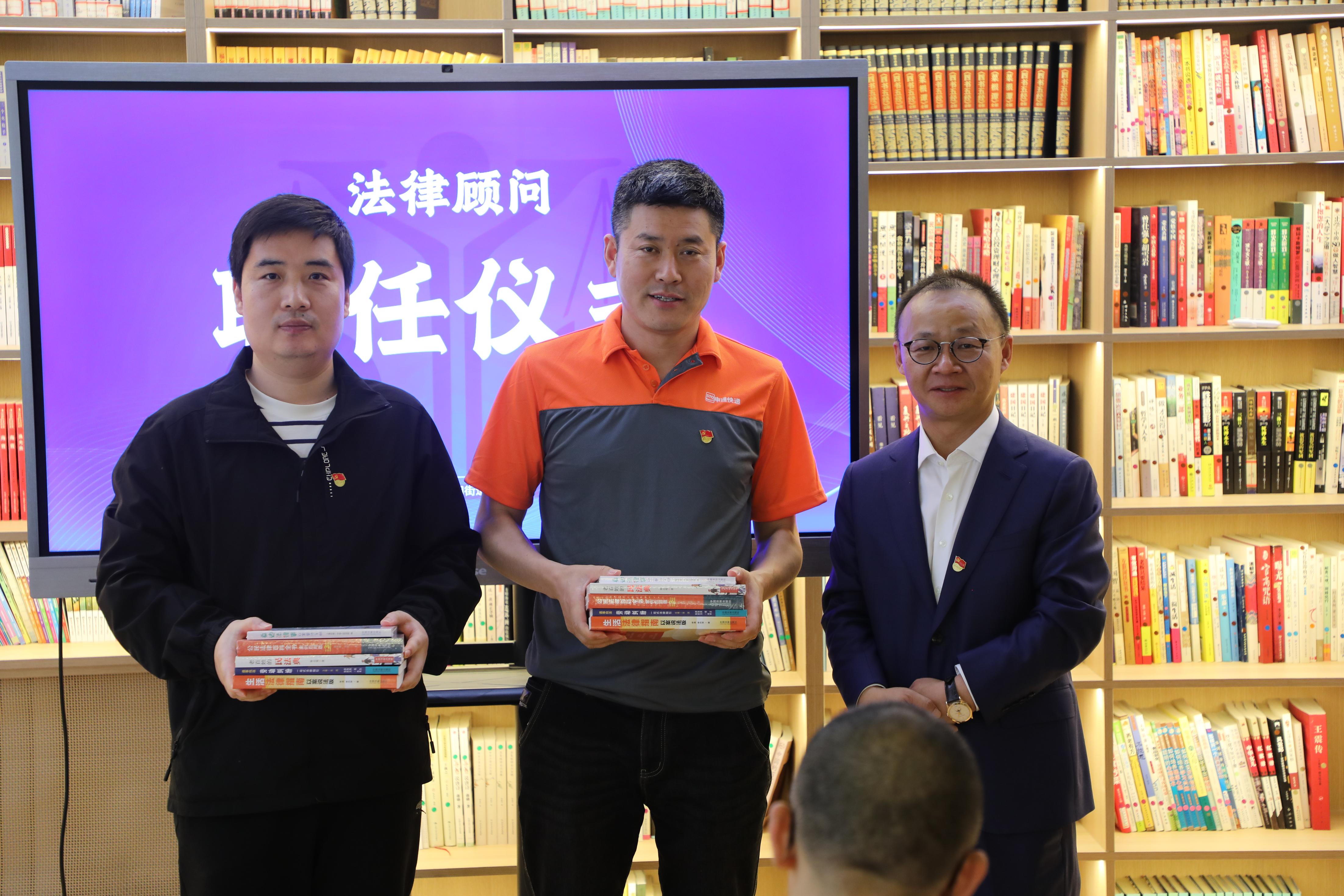 骑士团法律顾问聘任仪式上,郑欣宇向丁恒颁发法律顾问聘任证书,正式邀请其团队为骑士团的法律顾问团队。丁恒代表嘉润律师事务所向朝阳区申通党支部赠送法律书籍。