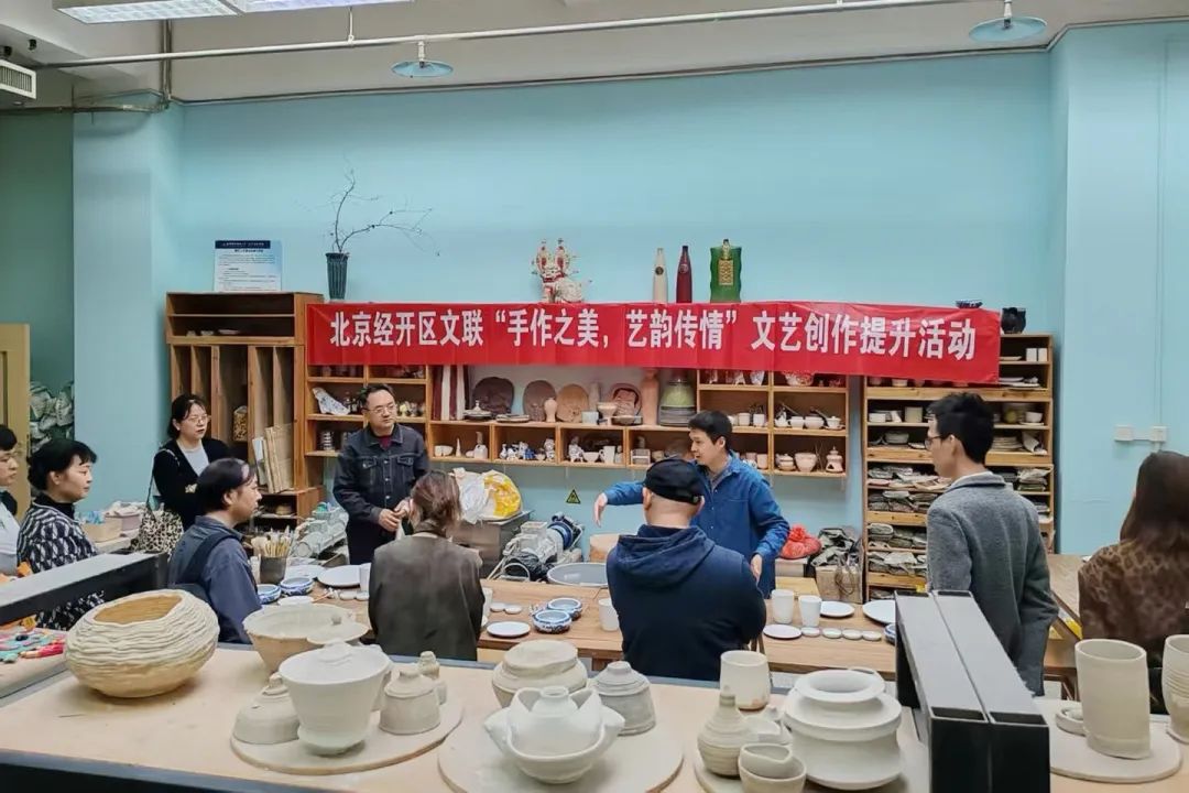 揭牌仪式结束后,与会领导前往艺术设计学院参观艺术展厅,近距离感受学生们的创意作品,艺术家们与师生开展陶艺共创活动,现场气氛热烈,艺术灵感在指尖碰撞。同一时间,经开区作协主席星河带来的《时间足够你爱——科幻文学与影视》主题讲座在线上线下同步开讲,来自全国各地30余所高校的学生,在线上与北职大学生一道聆听了这场精彩的讲座,在科幻与文学的跨界解读中拓宽视野。