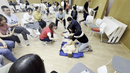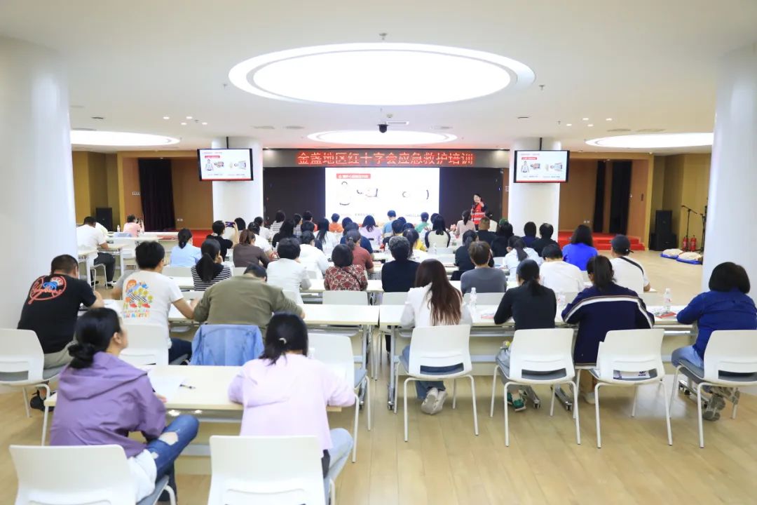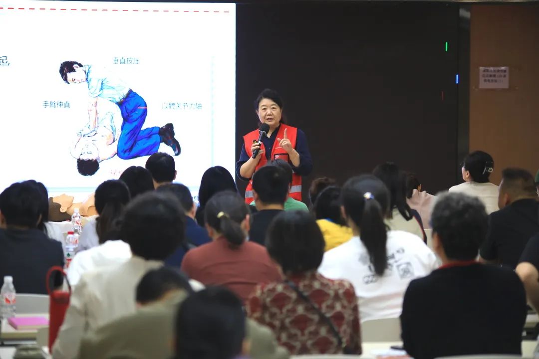 讲座中,区红十字会老师通过幻灯片、视频讲解和教具示范的方式,围绕心肺复苏、应急救护及AED操作等内容,为学员们带来了一场既专业又生动的急救知识培训。