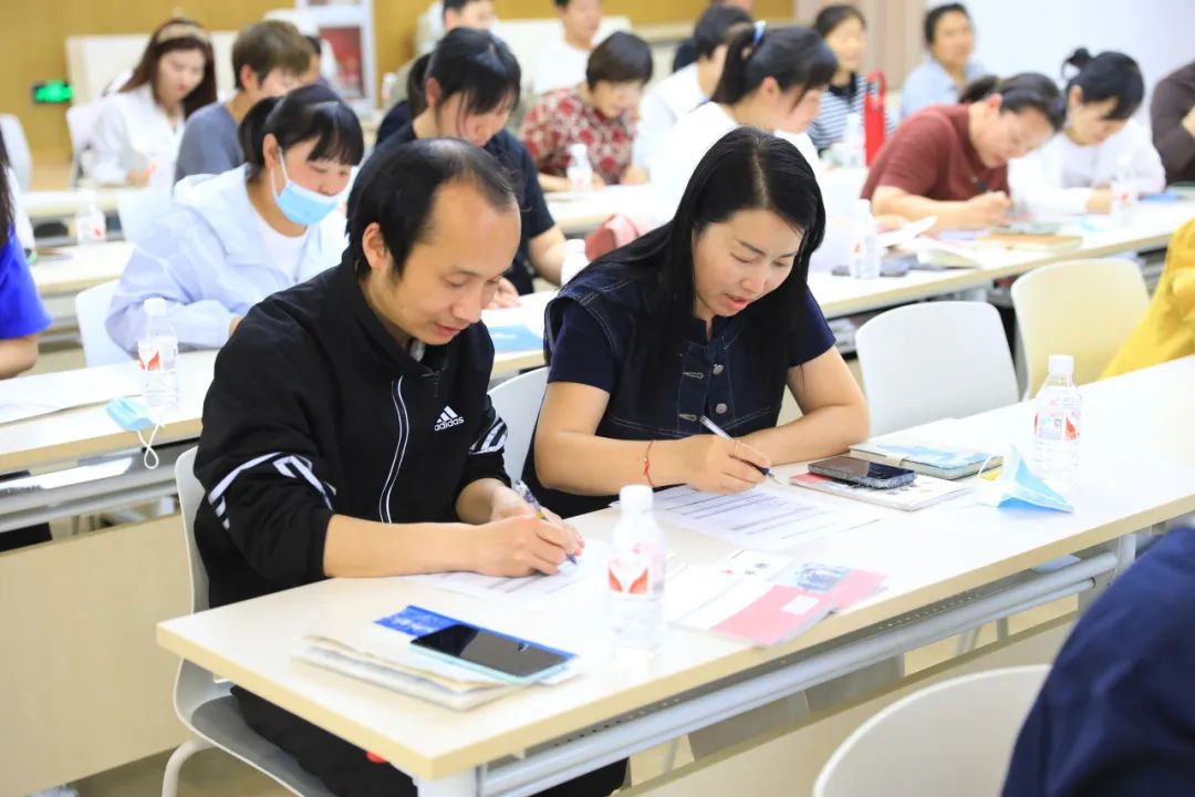 理论知识学习完成后,学员们认真作答《心肺复苏培训课程理论试卷》,试卷包括心脏骤停患者的表现、心肺复苏按压的部位、深度和频率、AED的使用要求等内容,进一步增强了学员们的应急救护知识。