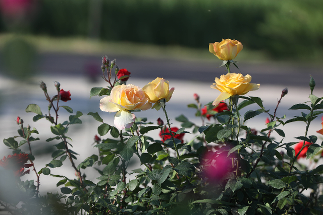 滨州日报/滨州网讯五月的市城区,仿佛被大自然打翻了调色盘,在大街小巷、公园广场,娇艳欲滴的市花月季肆意绽放,红的似火、粉的如霞、黄的浪漫;微风轻拂,更送来阵阵甜香,让每一位路过的市民都沉醉其中,满心欢喜。