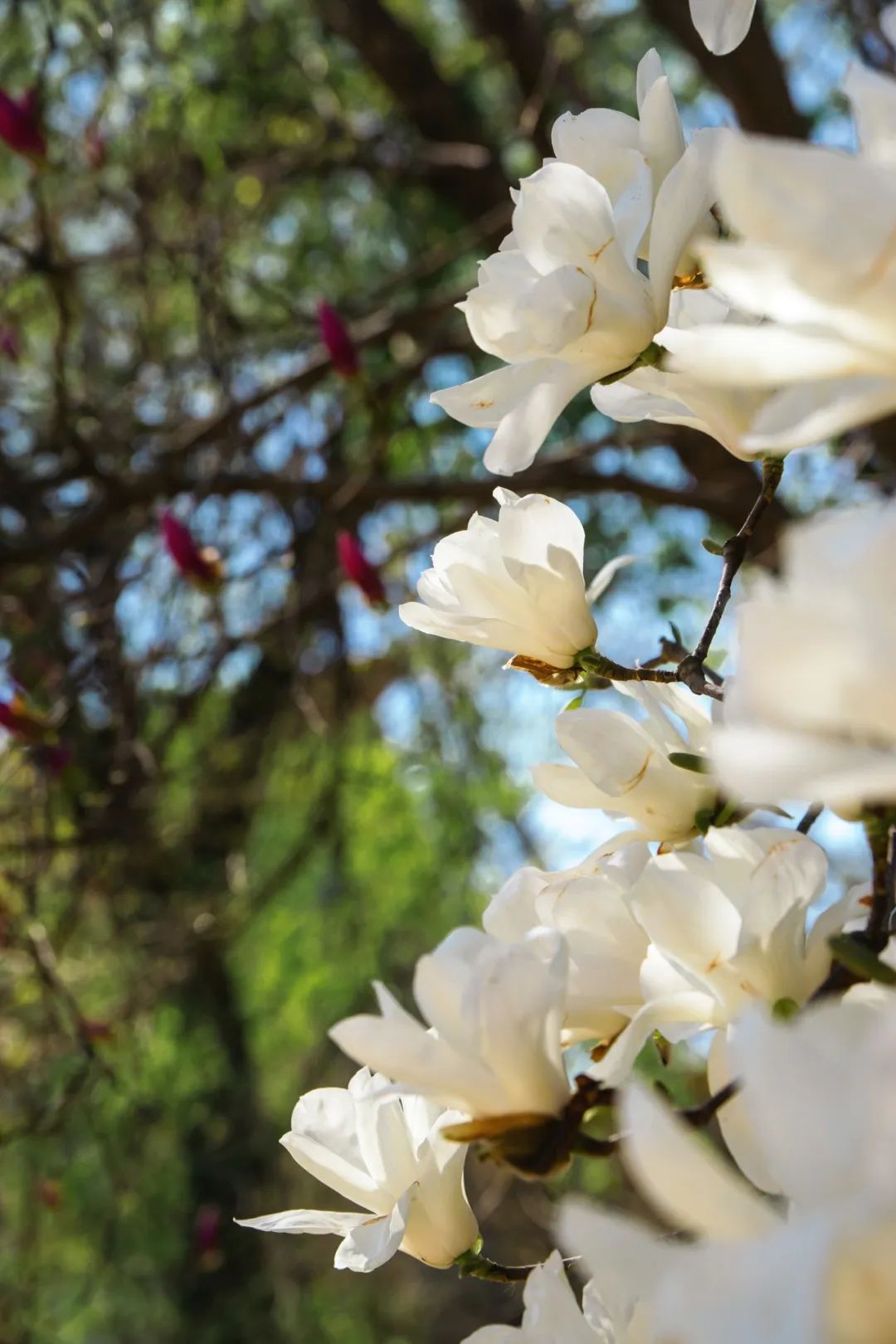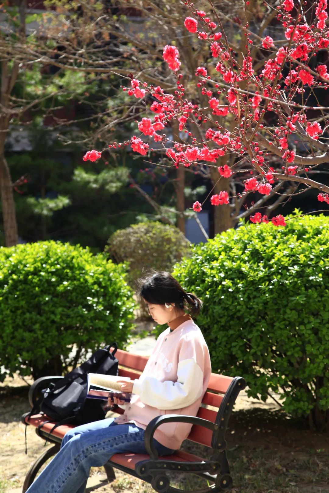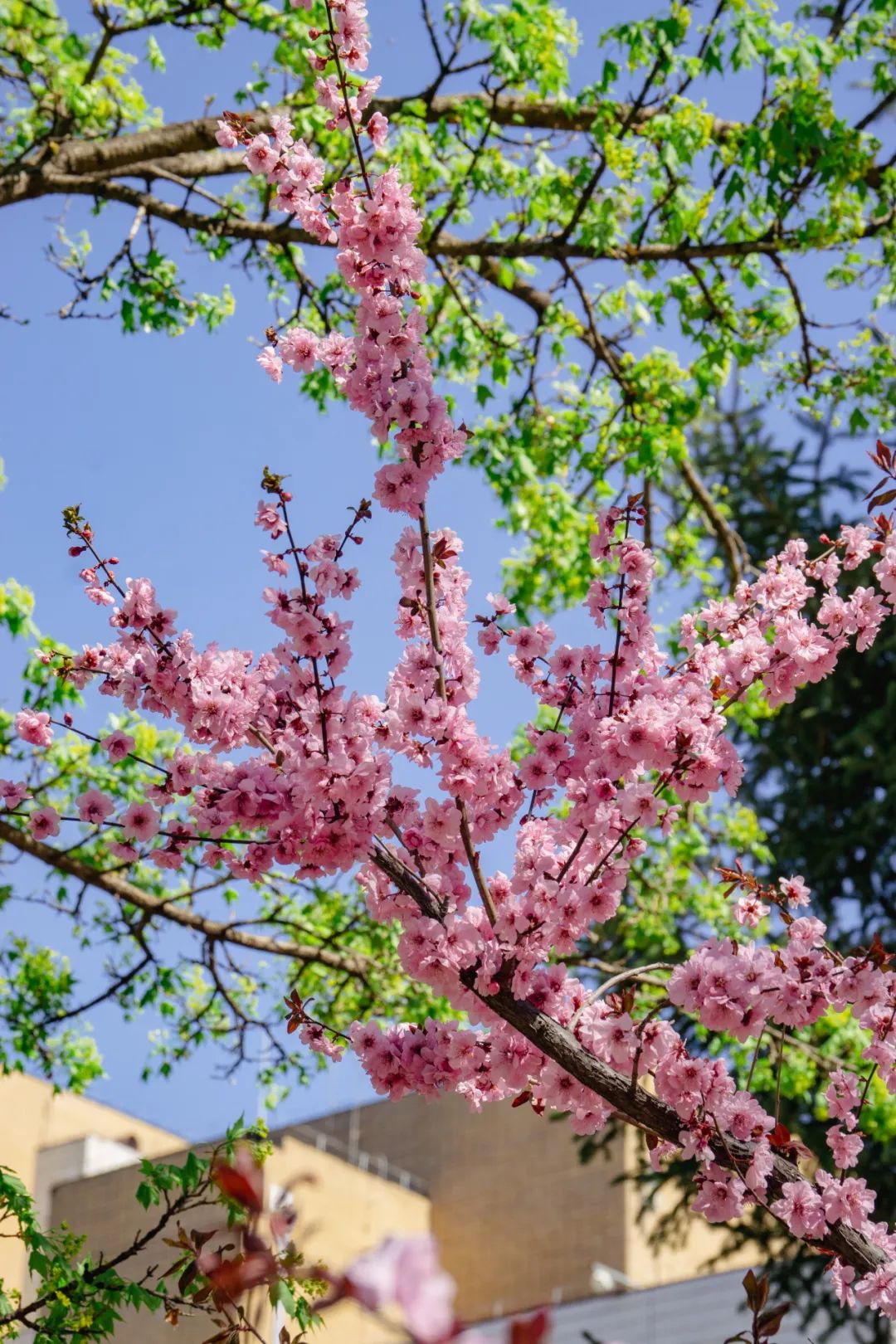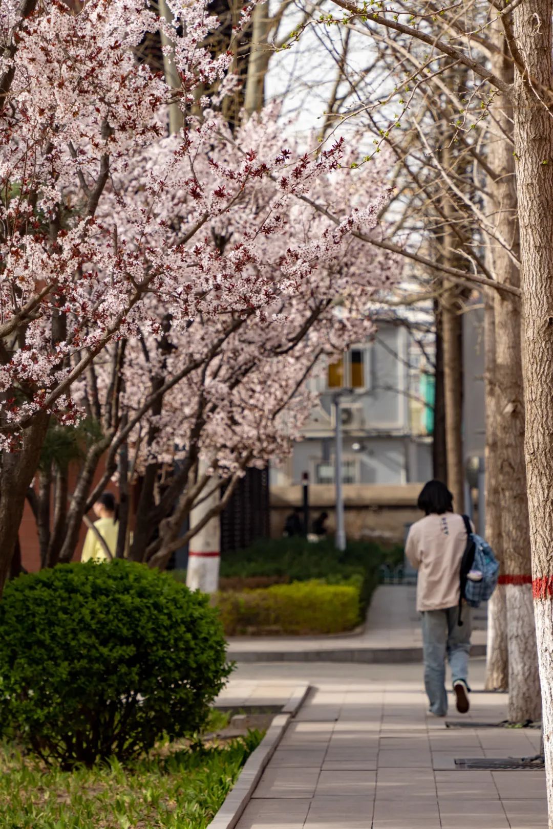 校园一隅,几株春花相拥
