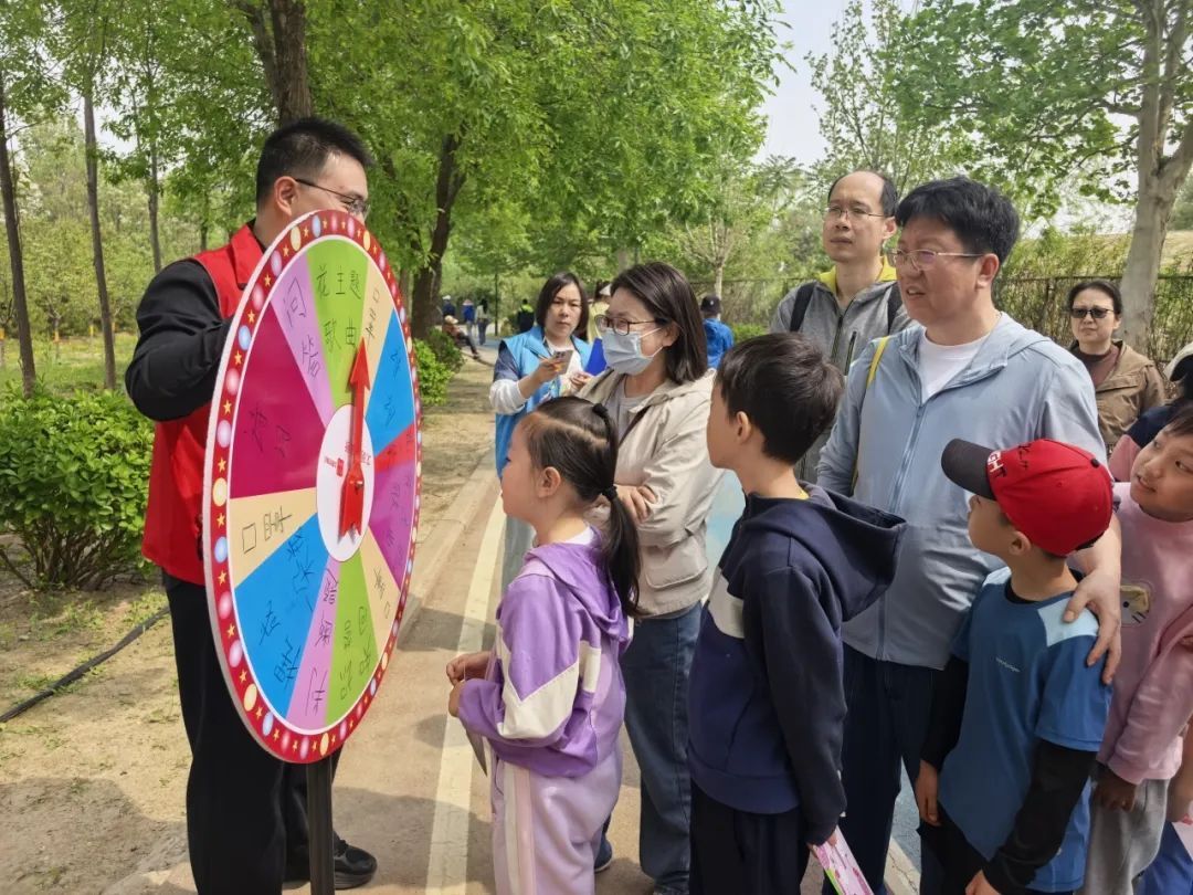 最受欢迎的当属“趣探牡丹大转盘”,转动盘面回答对应问题,家长和孩子“并肩作战”,每组家庭都对答如流,现场俨然成了露天的知识乐园。
