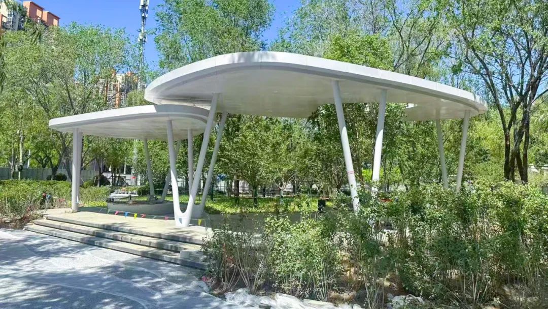 我委践行“以河道复兴带动城市更新”理念,着力打造多处滨水景观。北小河街角小公园是中关村社区数字经济产业园环境整治项目的重要节点之一,原为河道所管理的封闭空间,不对市民开放。我委将其纳入环境整治项目提升改造范围,增设智慧设施、凉亭、整石座凳、夜光跑道,增加造型松树、地被花卉等苗木,为周边居民增加了一处锻炼休闲的好去处。