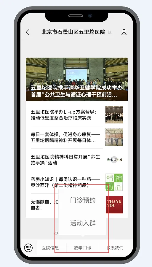 挂号方式:关注五里坨医院公众号,轻松预约,一键开启健康之旅。