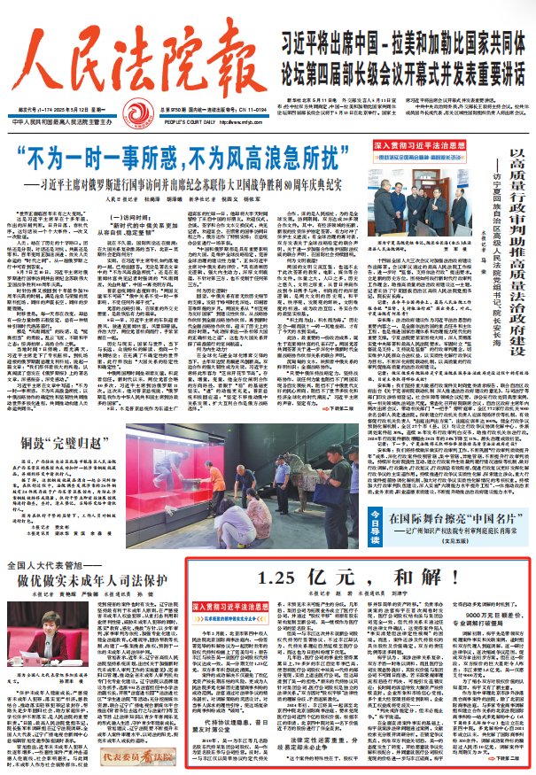 虽然后续双方仍然反复就方案中的各种细节问题产生争执,不过,经过法院的四次法庭调解、近百次电话调解,加上调解员与中间人的不懈努力,今年2月,双方当事人终于成功达成了1.25亿元的一揽子和解方案。