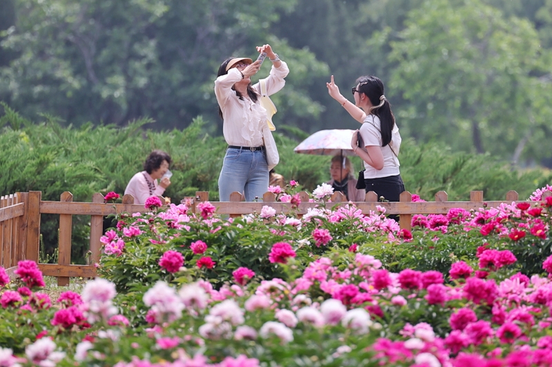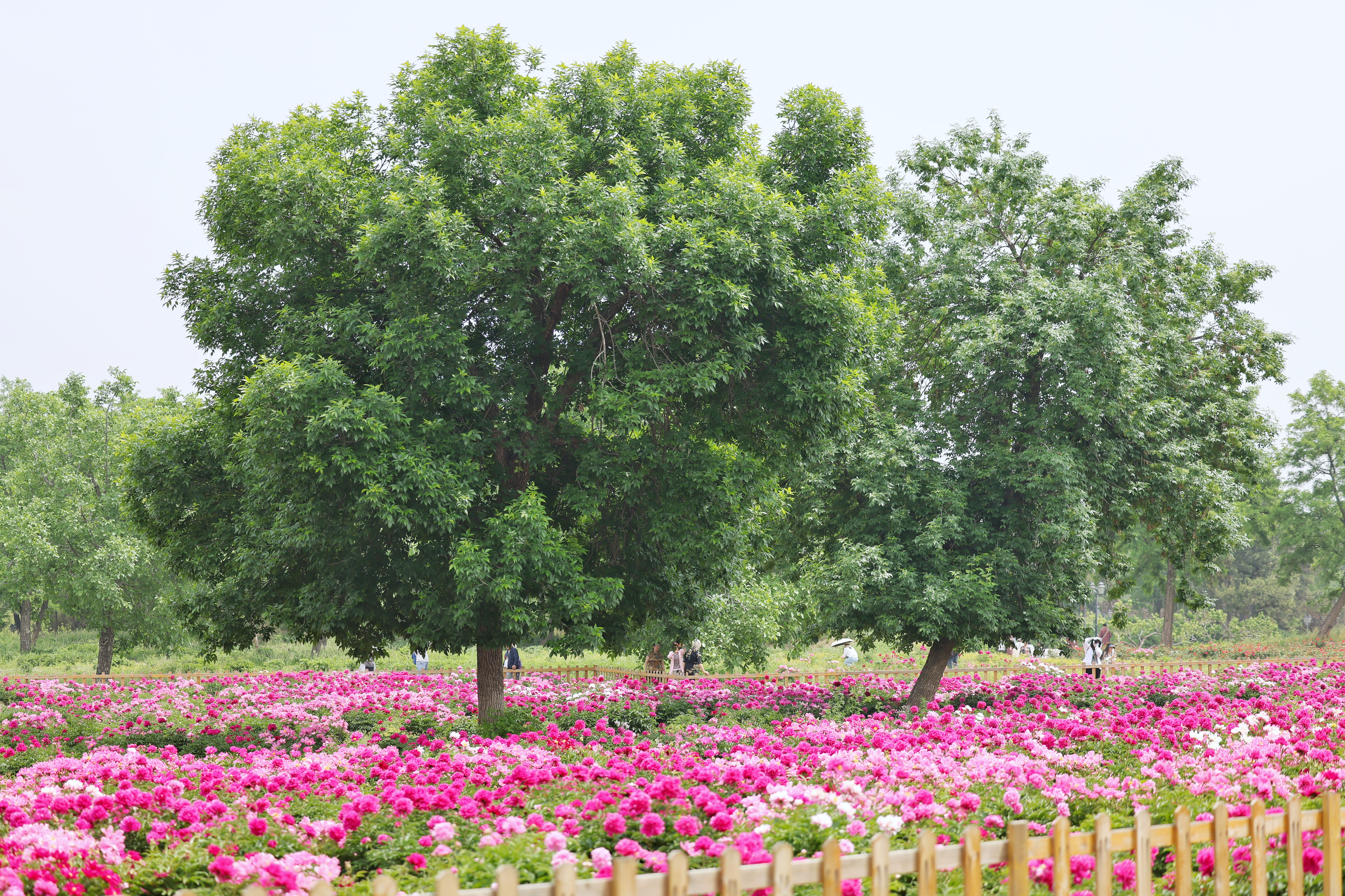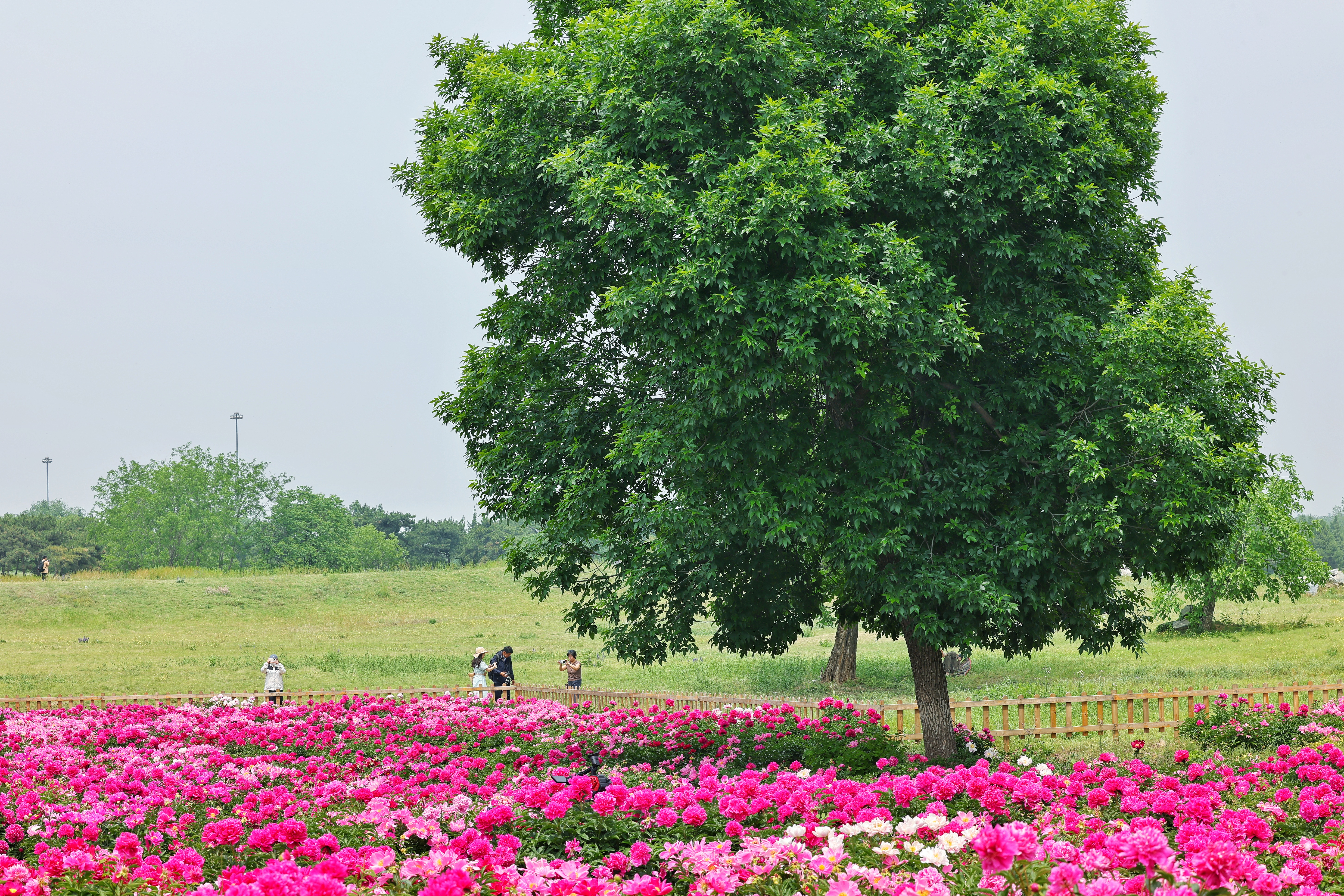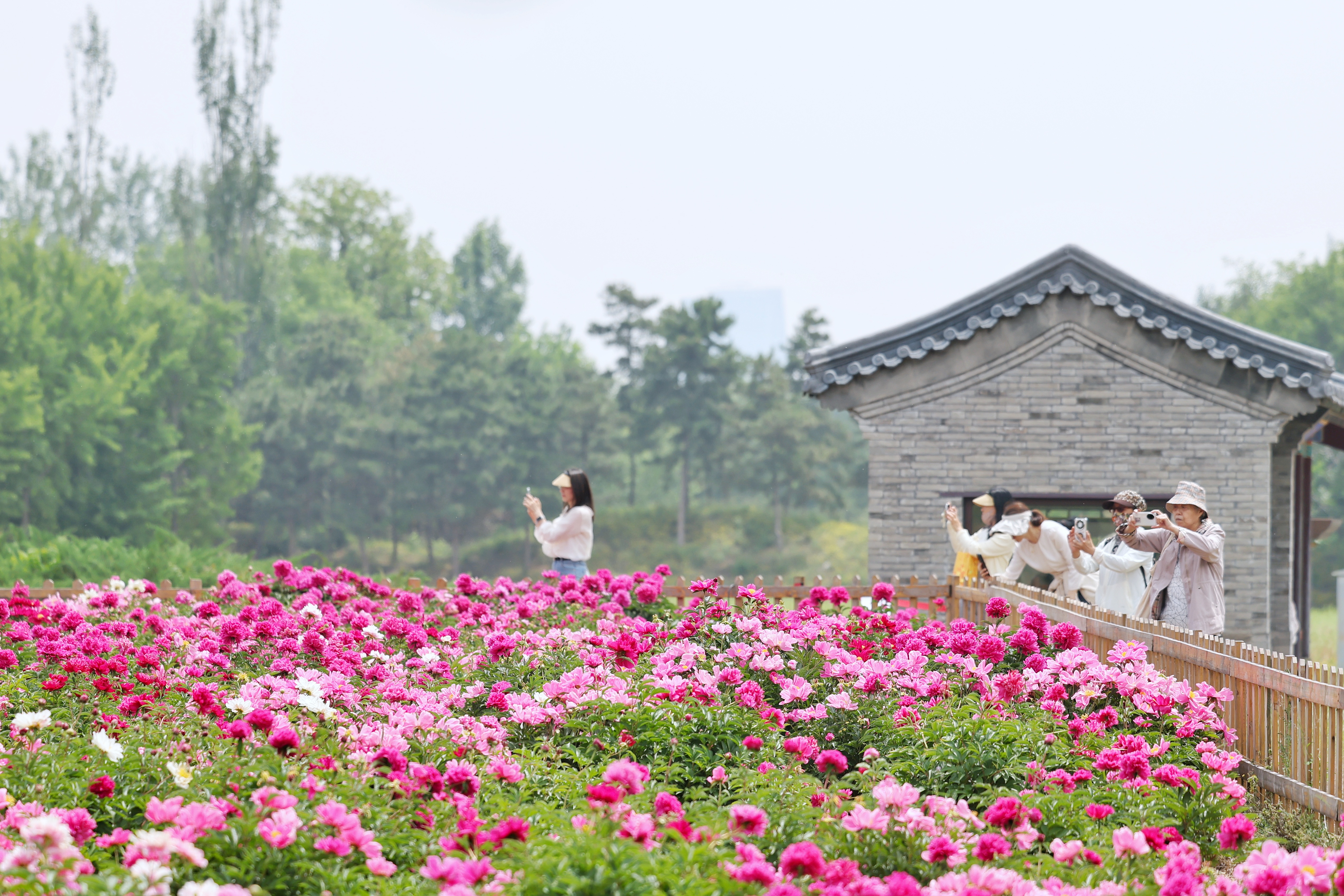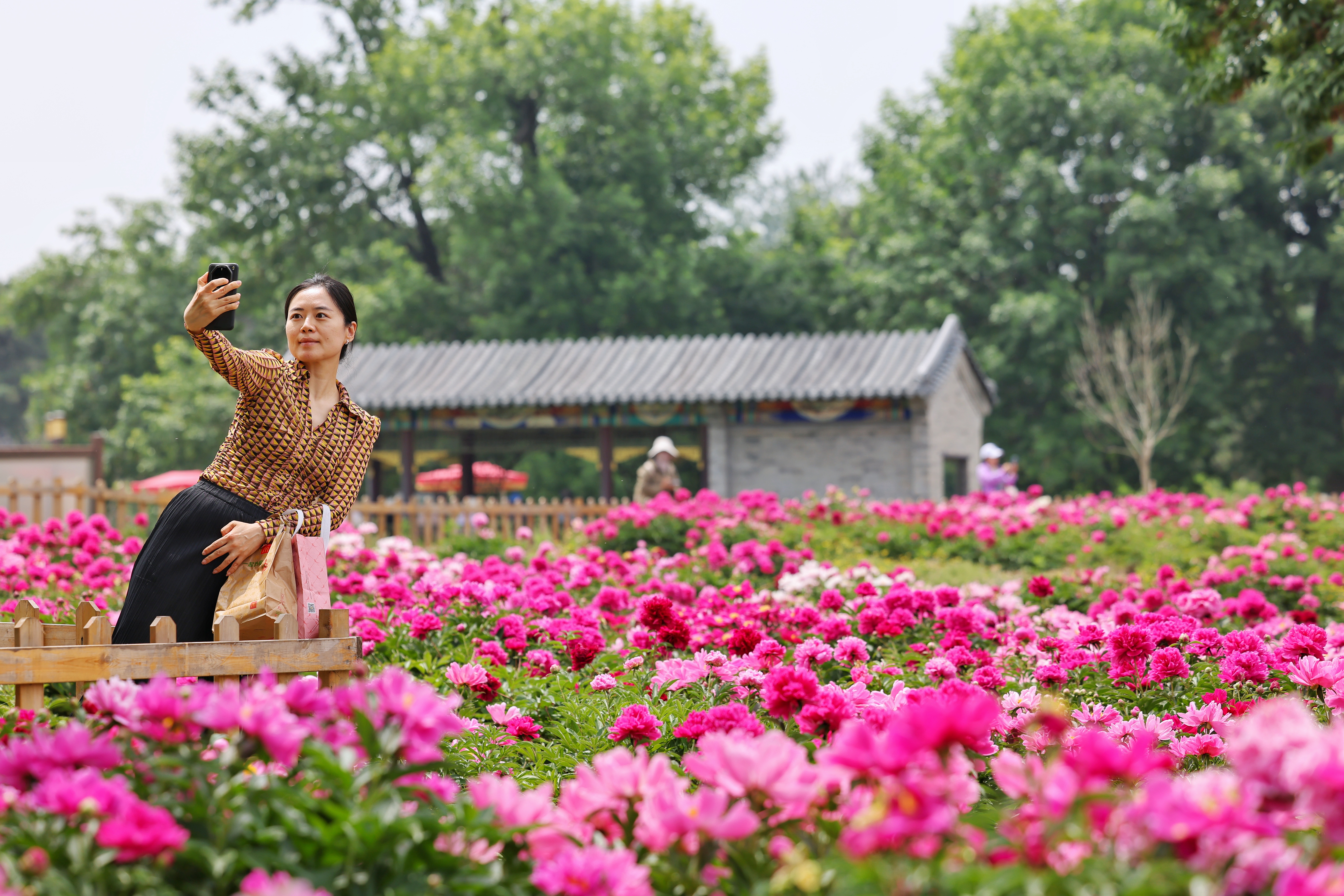 目前,芍药正值最佳观赏期,预计可持续至5月下旬。不少游客专程前来,在花海中拍照留念。