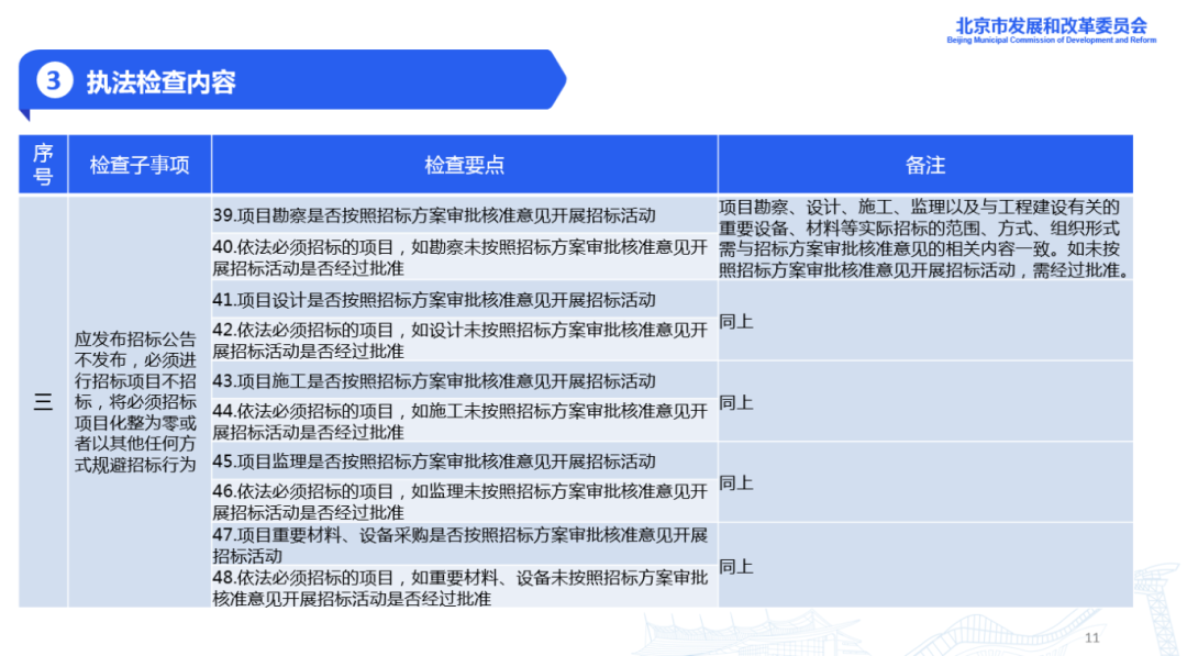 培训会上,执法人员详细讲解了招投标领域执法的检查计划、52个检查要点、法律法规、执法流程和项目单位填报操作等内容。发改君为大家整理了学习笔记,一起来看——