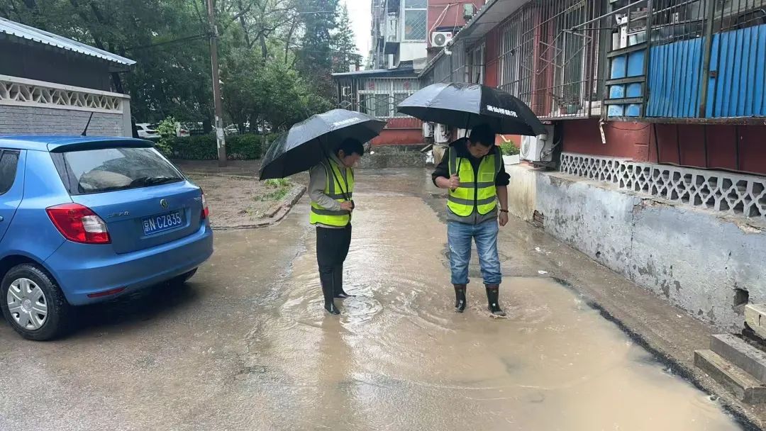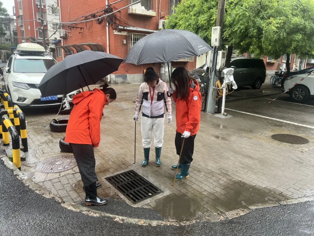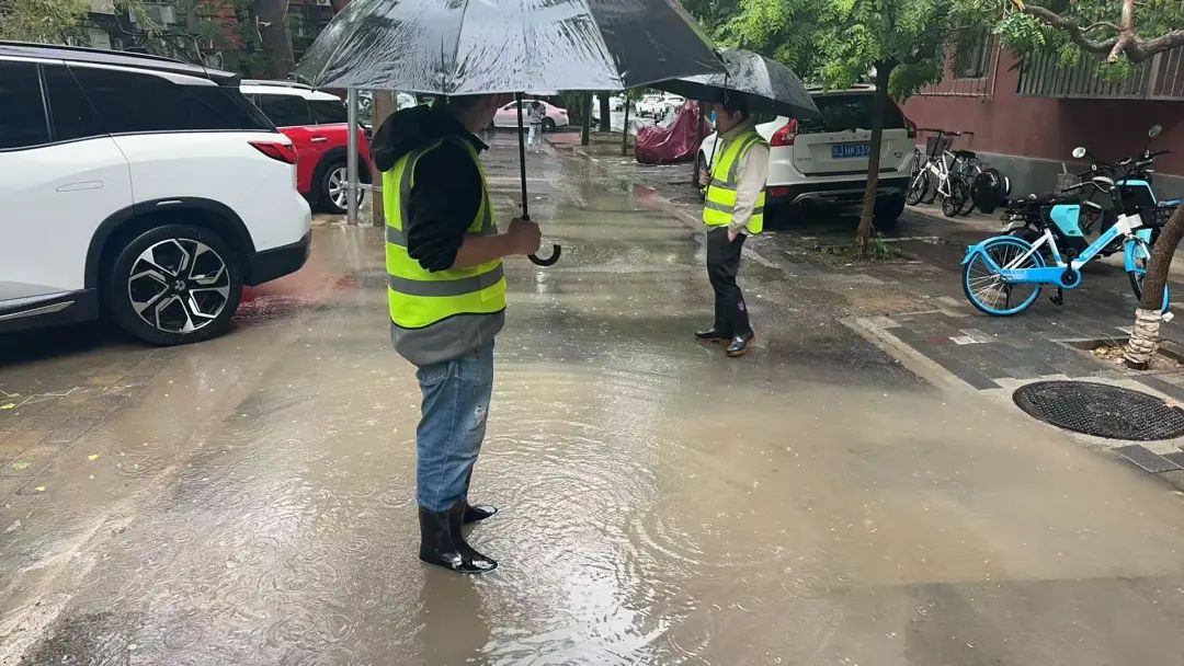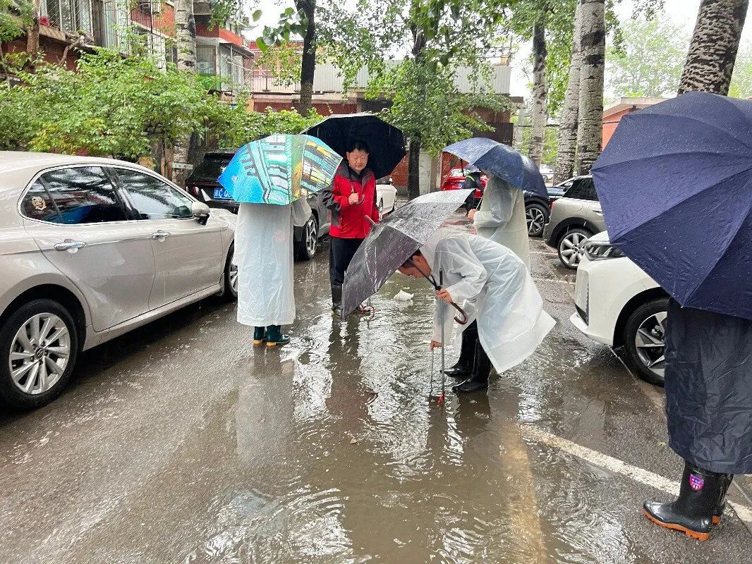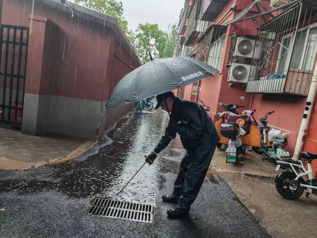 雨声就是哨声,雨情就是命令。辖区广大党员干部冲锋在一线,与物业人员第一时间对辖区平房区、出入口、地下室以及其他防汛重点部位开展全面排查工作,重点对污水井、雨箅子的情况进行检查和清理。