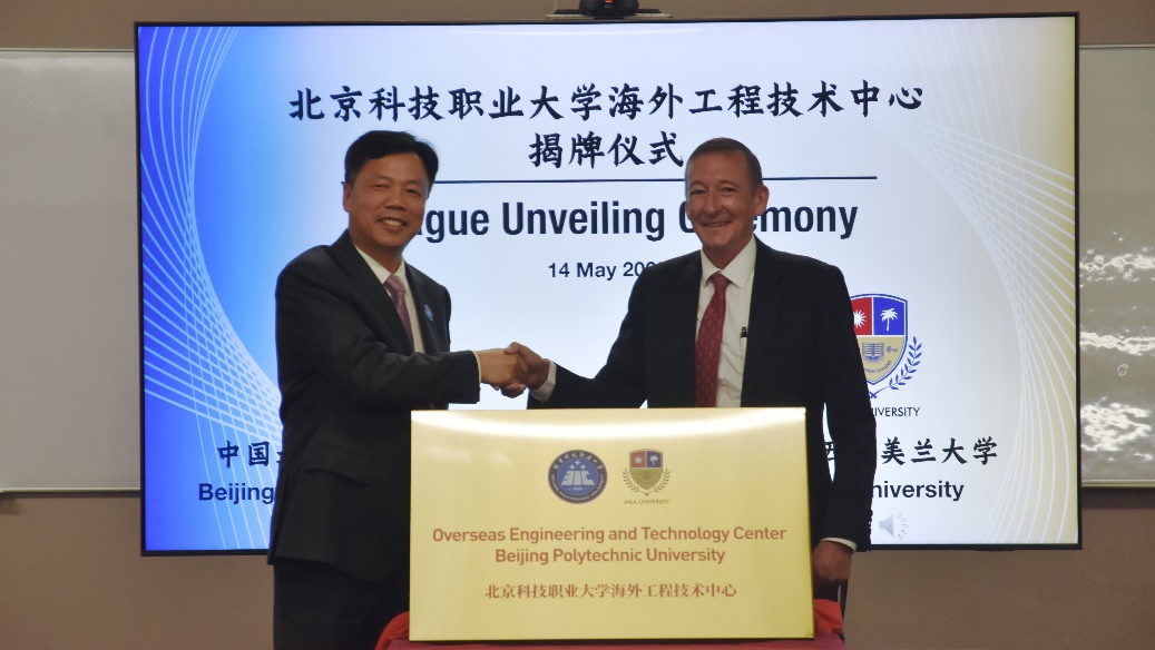 5月14日,北京科技职业大学在马来西亚美兰大学设立的海外工程技术中心正式揭牌。这是该校在海外建立的第二个技术研发平台,也是首家中国大学在马来西亚美兰大学设立海外技术中心。