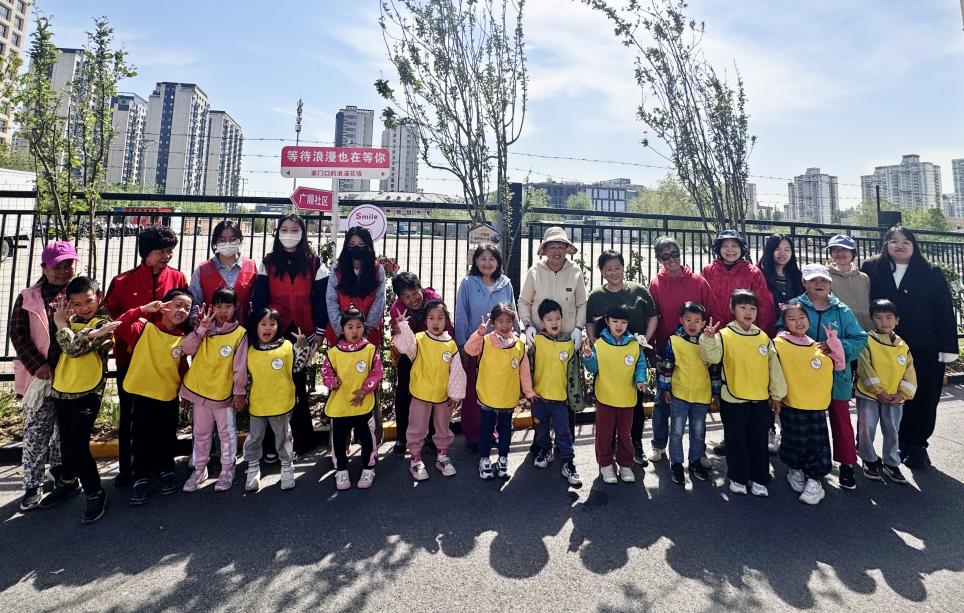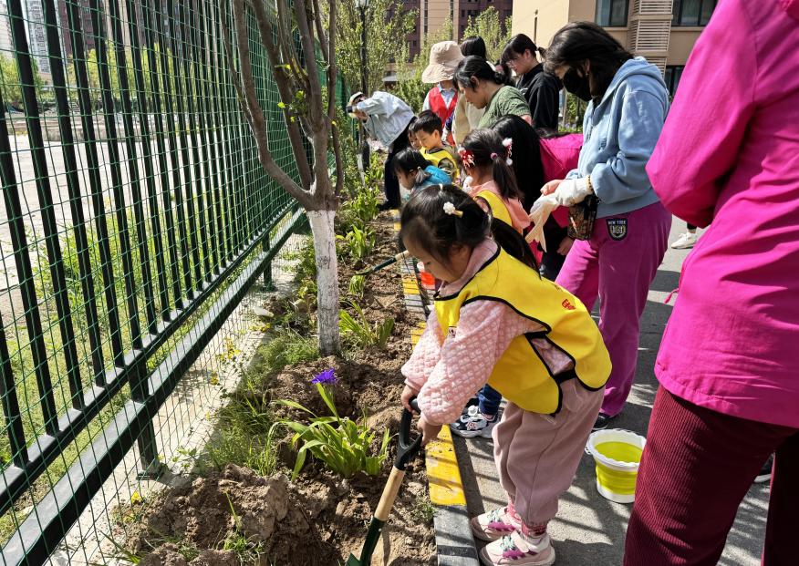 工作人员为居民分发花卉幼苗和种植工具,并引导大家前往指定种植区域。活动现场,小朋友们活力满满,为活动增添别样色彩。一场热火朝天的种植大作战就此展开,居民们分工明确、配合默契。有的挥铲培土,为幼苗筑起温暖港湾;有的提桶浇水,专注呵护幼苗。小朋友们在“大朋友”陪伴下干劲十足,他们提着小水桶、拿着小铲子认真劳作;有的还认养了花圃,在铭牌上写下名字和心灵寄语,字里行间满是对未来的憧憬。