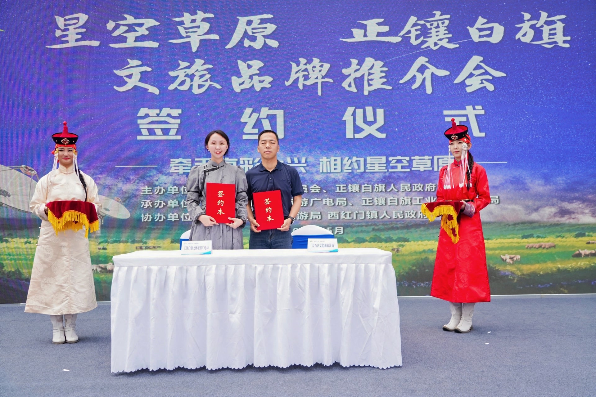 在推介会的签约环节,大兴区与正镶白旗签订了深化京蒙文旅交流合作框架协议,正镶白旗星空文化旅游营地与多家文旅企业签订了文旅合作意向书。