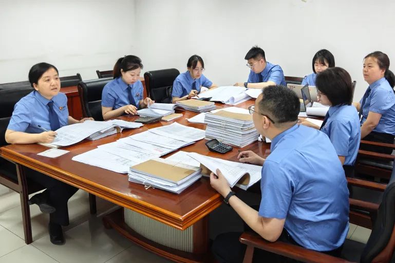 石景山区检察院刑事检察部门集中办理一起特大金融诈骗案。图为5月14日,检察人员逐一核对几十名犯罪嫌疑人资金流水情况和涉案资金数额。