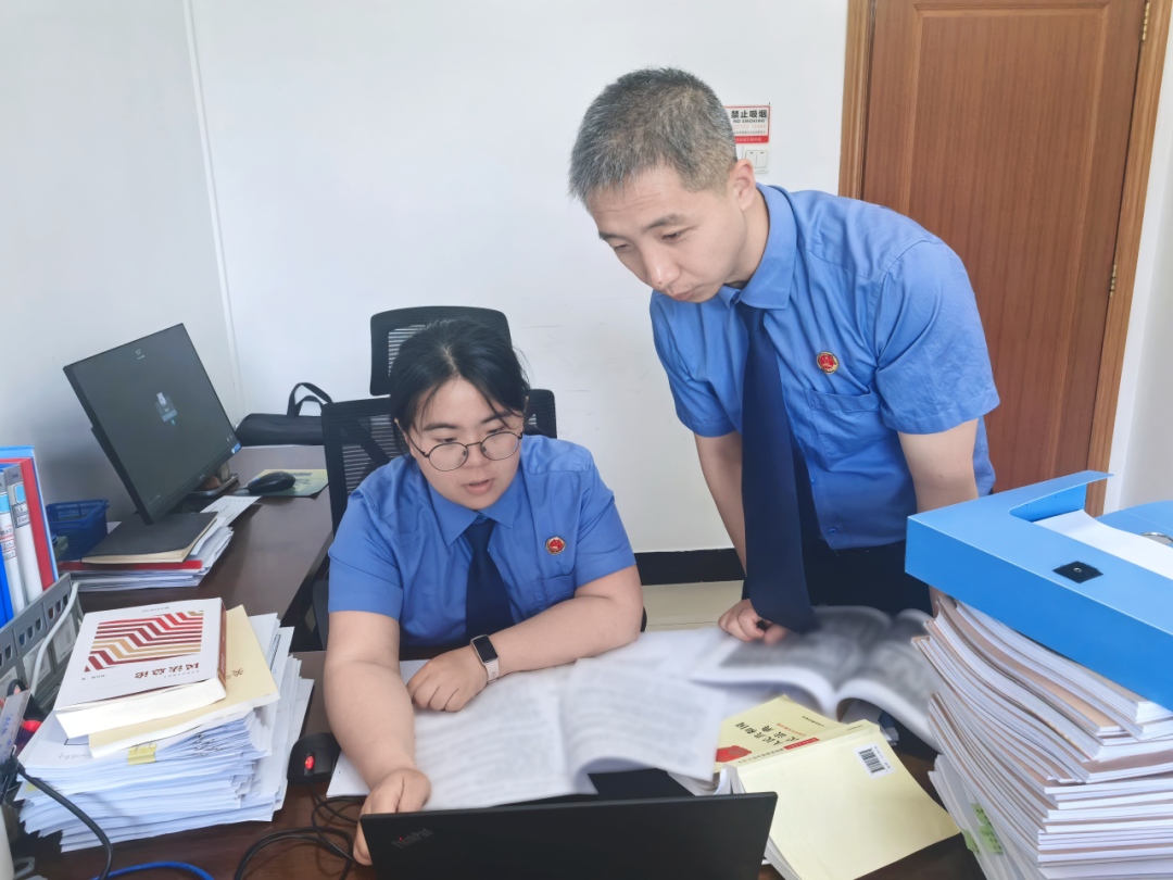 延庆区检察院运用大数据法律监督模型开展涉民事终结本次执行程序专项监督。图为5月15日,检察官助理查阅案卷、分析比对监督案件线索、梳理相关法律规定等。
