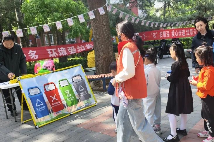 现场设置多个互动专区,扔沙包、互动转盘等“沉浸式”体验,将垃圾分类知识转化为趣味挑战,吸引广大居民参与其中。并通过“小手拉大手”的形式,有效提升垃圾分类的知晓率和参与度,为创建绿色文明社区奠定基础。