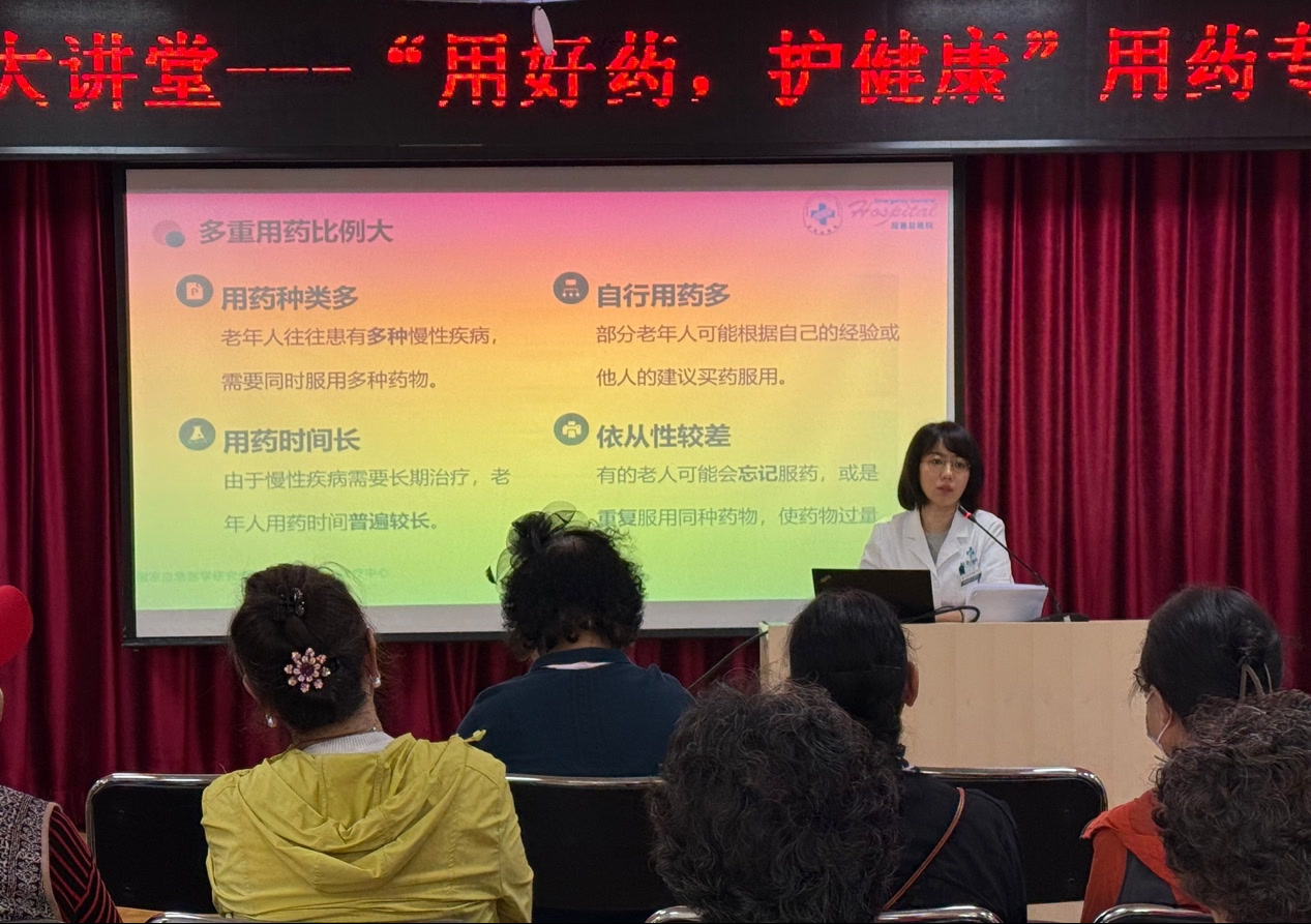 为切实增强老年人用药安全意识,助力其合理用药,5月19日上午,应急总医院药学部专家团队走进朝阳区枣营社区,举办了一场主题为“用好药,护安康——让每一粒药都发挥最佳效果”的科普讲座。活动由药学部张藜莉主任统筹策划并全程指导,李怡文主任药师主讲,薛文鑫主任药师、樊硕副主任药师共同参与,以“讲座+互动+中医药体验”的创新形式,助力老年人科学减药、精准用药,规避“处方瀑布”风险。