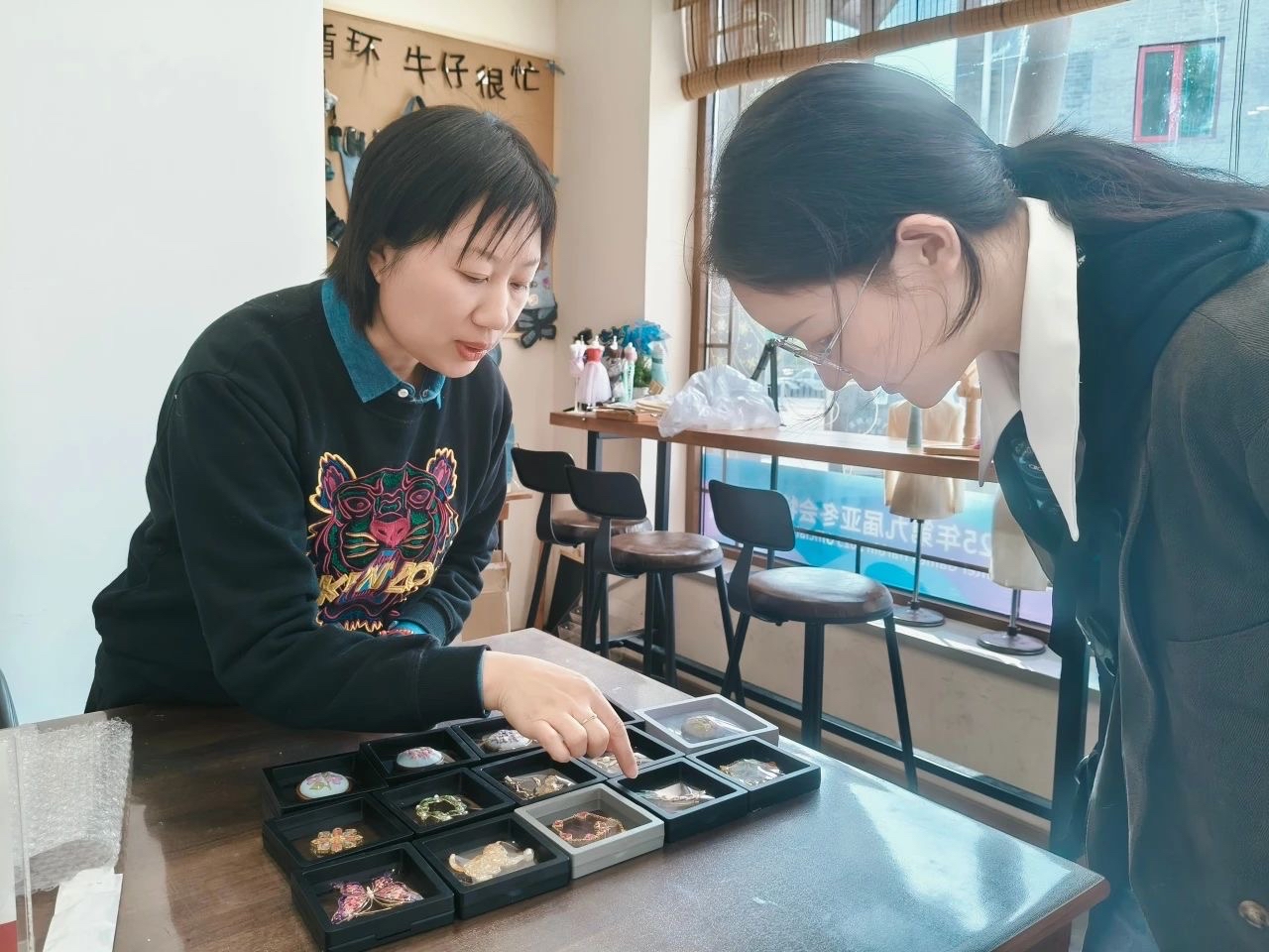 校园内的模拟服贸会现场,企业展示区精彩纷呈。华为带来了鸿蒙生态体验、内购优惠及免费贴膜服务,迪信通现场提供通信套餐优惠及购机补贴,鑫利源食品开展健康糕点试吃与满赠活动,乾合积木展示精致的榫卯工艺产品及创意互动,中国邮政提供有声明信片现场打印服务,玉梅剪纸为留学生团体提供非遗剪纸体验活动等。各家企业精心布置展位,将品牌文化宣传、特色产品展售、专业服务展示等内容一一呈现,吸引了众多目光。