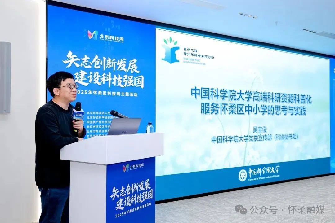 启动仪式上,中国科学院物理研究所张帅博士分享了“综合极端条件实验装置”的前沿科技内容,中国科学院大学吴宝俊博士则围绕科学教育资源服务中小学教育进行了深入探讨。来自怀柔一中和中关村一小怀柔分校的学生代表分别展示了社会问题调查报告和创客项目,展现了青少年的科学探索精神。此外,活动现场还举行了2025年怀柔区科普示范(教育)基地授牌仪式,为公众提供了了解科技创新的重要窗口。