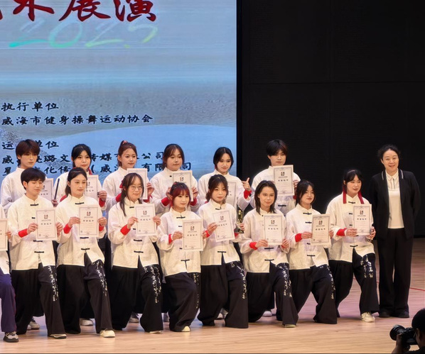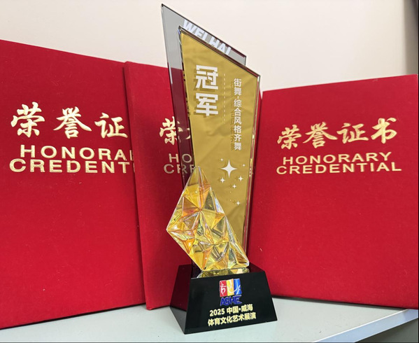5月24日,由国家体育总局体育文化发展中心主办的2025中国·威海体育文化艺术展演圆满落幕。山东外事职业大学DK街舞社团凭借教育学院王璐老师创编的国风街舞作品《墨舞茶香》,在街舞项目“综合风格齐舞——大学乙级A组”比赛中脱颖而出,一举夺得冠军殊荣。