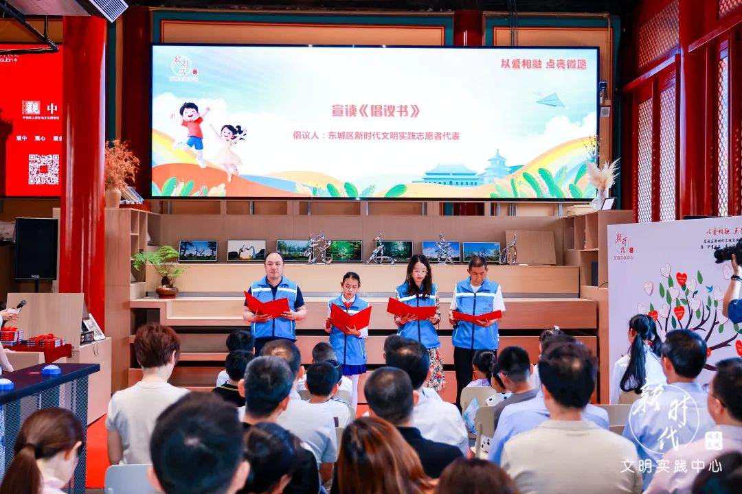活动尾声,东城区“护童成长、童心同行”项目启动仪式将现场气氛再度推向高潮。项目的启动标志着东城区正式开启儿童关爱服务的新征程,也为新时代文明实践工作注入新的活力与力量。